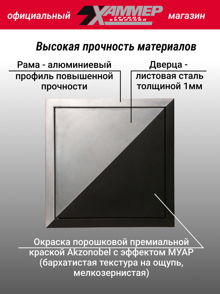 Люк металлический Хаммер 30х30 (ШхВ) см, нажимной, сталь, графит, петли на стороне 30