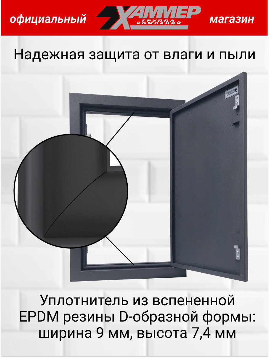 Люк металлический Хаммер 30х30 (ШхВ) см, нажимной, сталь, графит, петли на стороне 30
