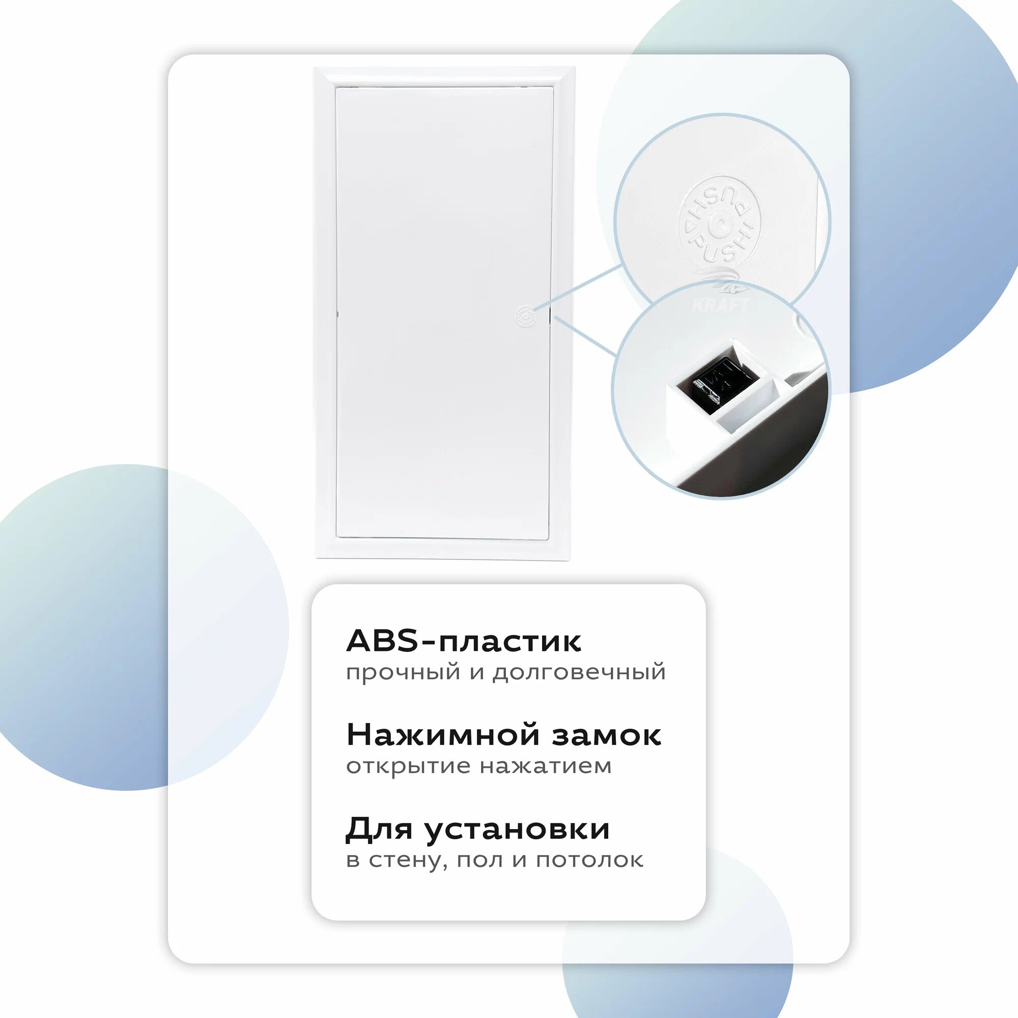 Люк ревизионный сантехнический 200х250 мм с замком защёлкой, присоединительный 197х247 мм, из белого ABS пластика