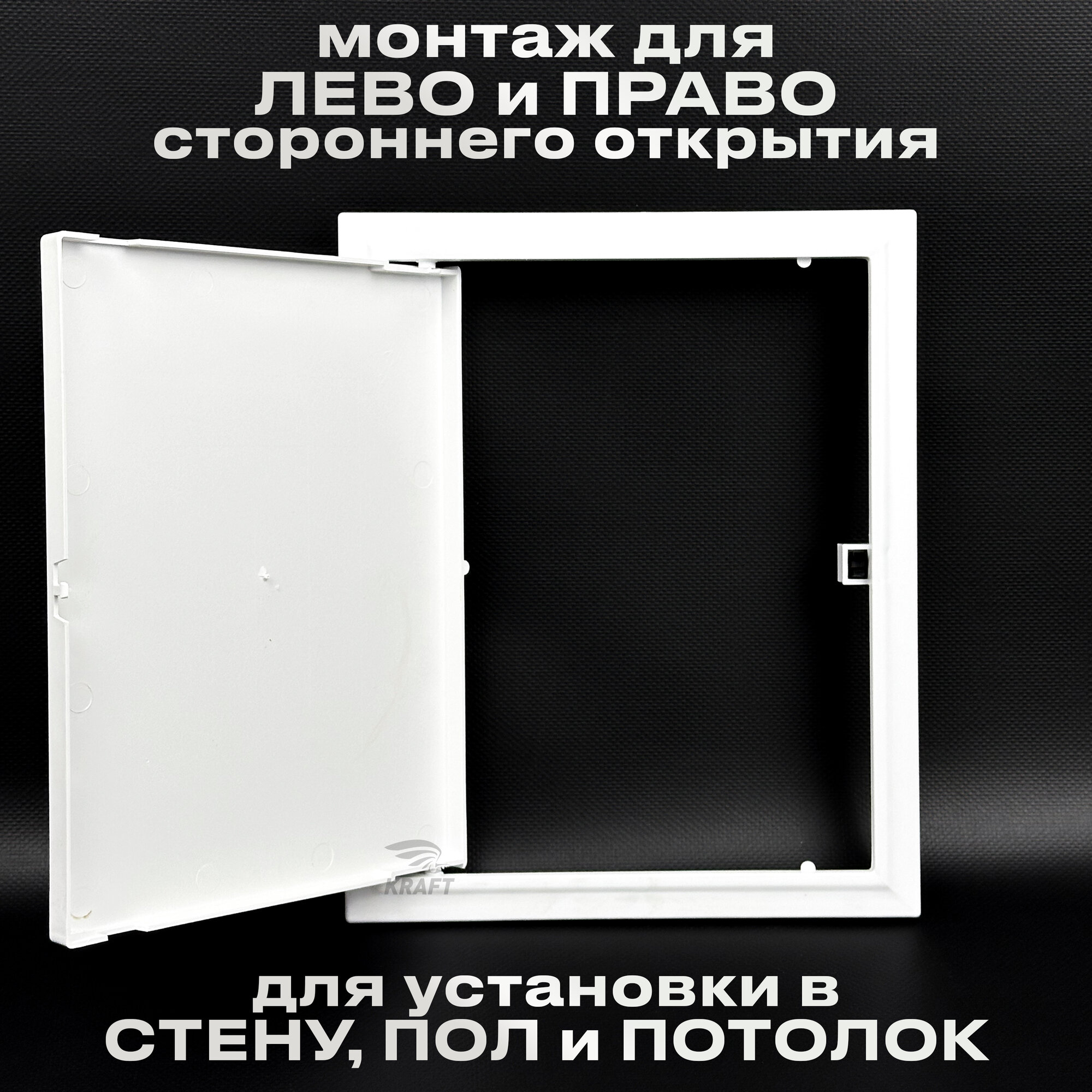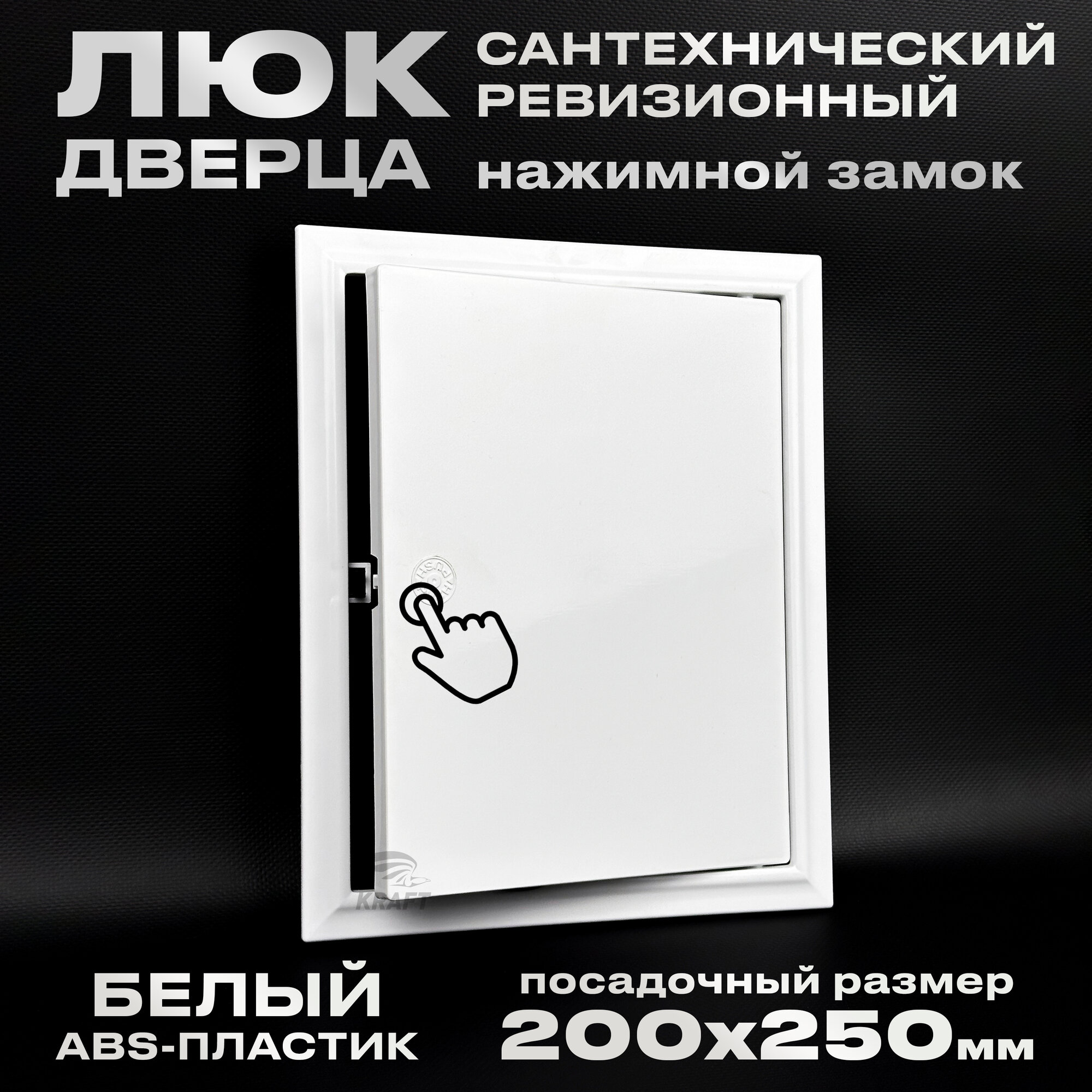 Купить Люк ревизионный сантехнический 200х250 мм с замком защёлкой, присоединительный 197х247 мм, из белого ABS пластика
