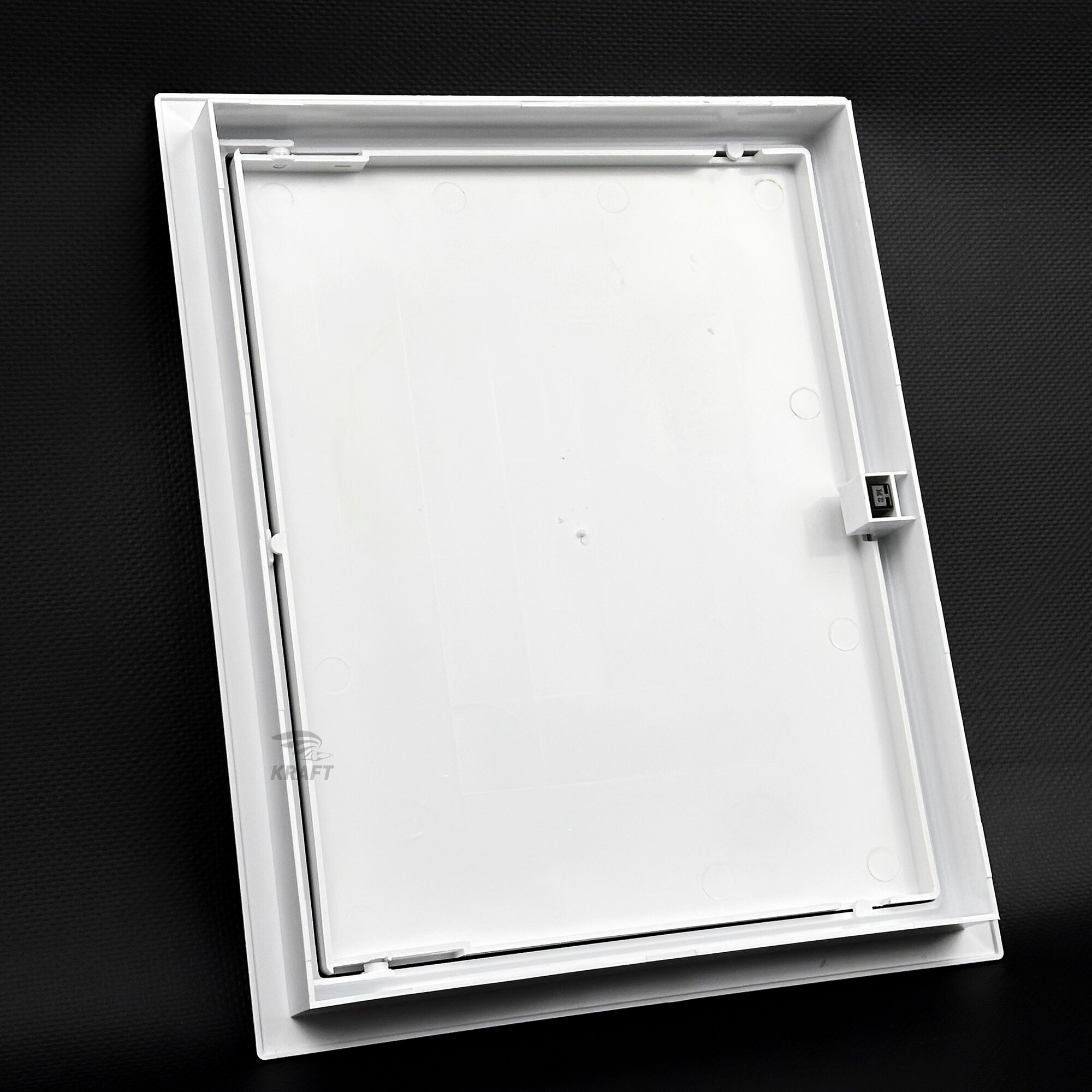 Люк ревизионный сантехнический 400х400 мм с замком защёлкой, присоединительный 398х398 мм, из белого ABS пластика