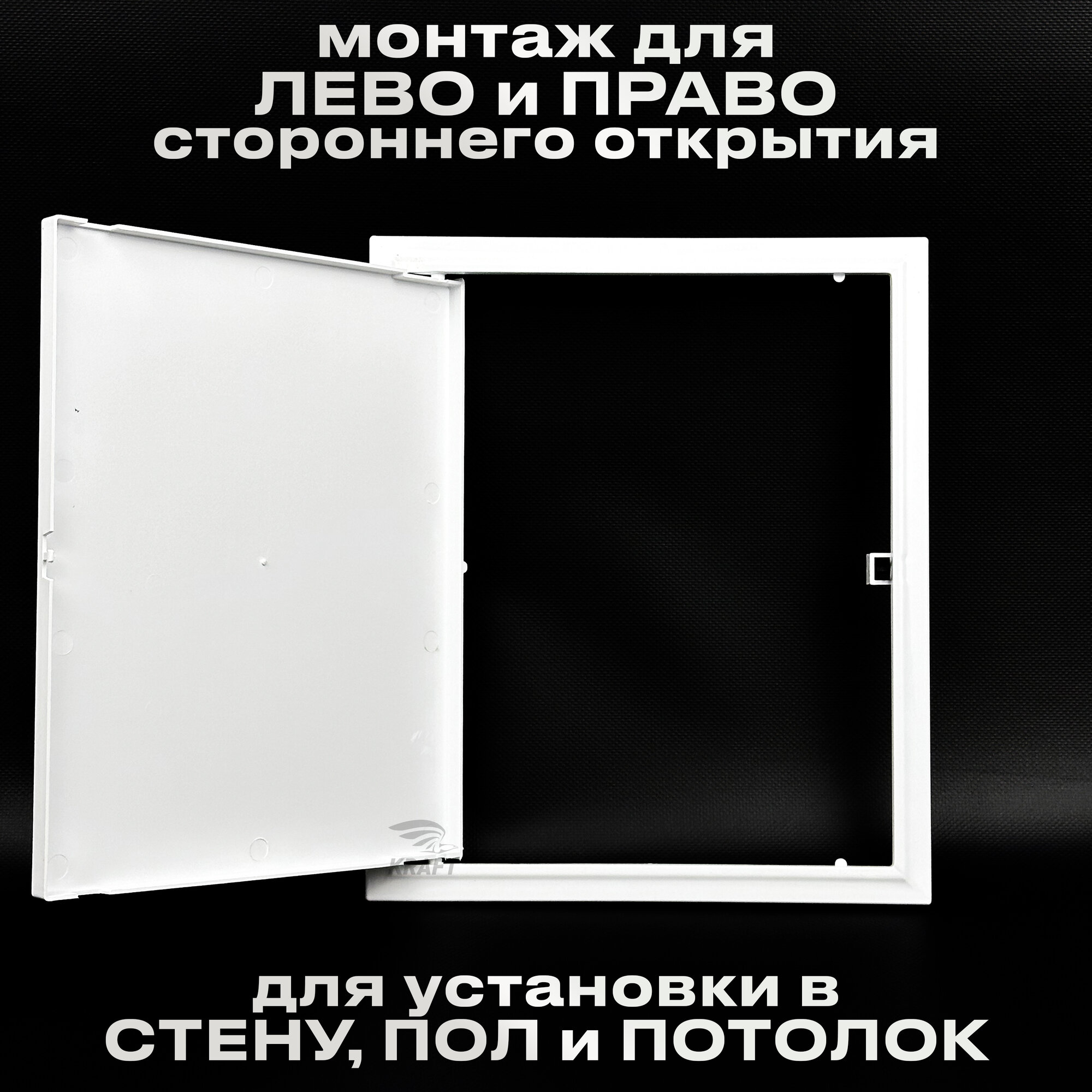 Купить Люк ревизионный сантехнический 250х300 мм с замком защёлкой, присоединительный 247х297 мм, из белого ABS пластика