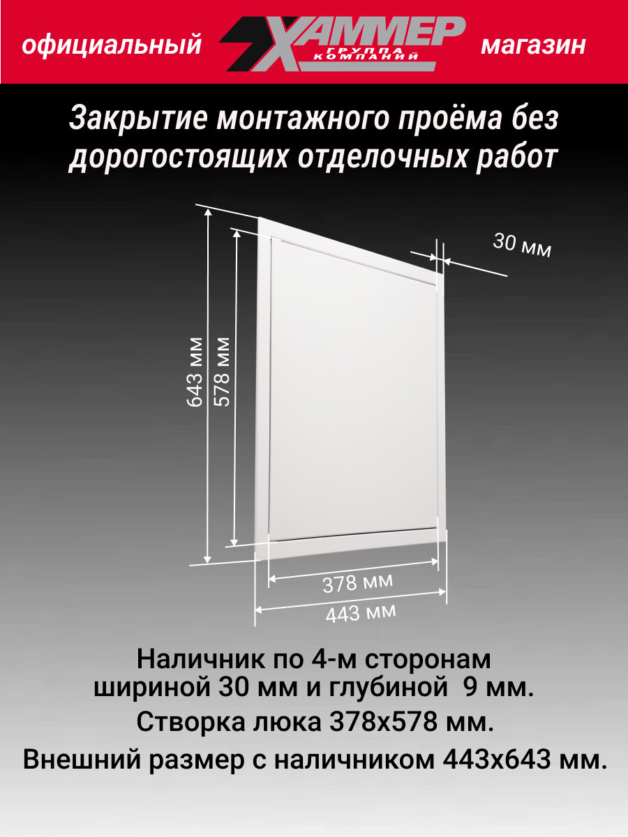 СохранитьЛюк металлический Хаммер 40х60 (ШхВ) см, нажимной, сталь, белый, петли на стороне 60 интересное: