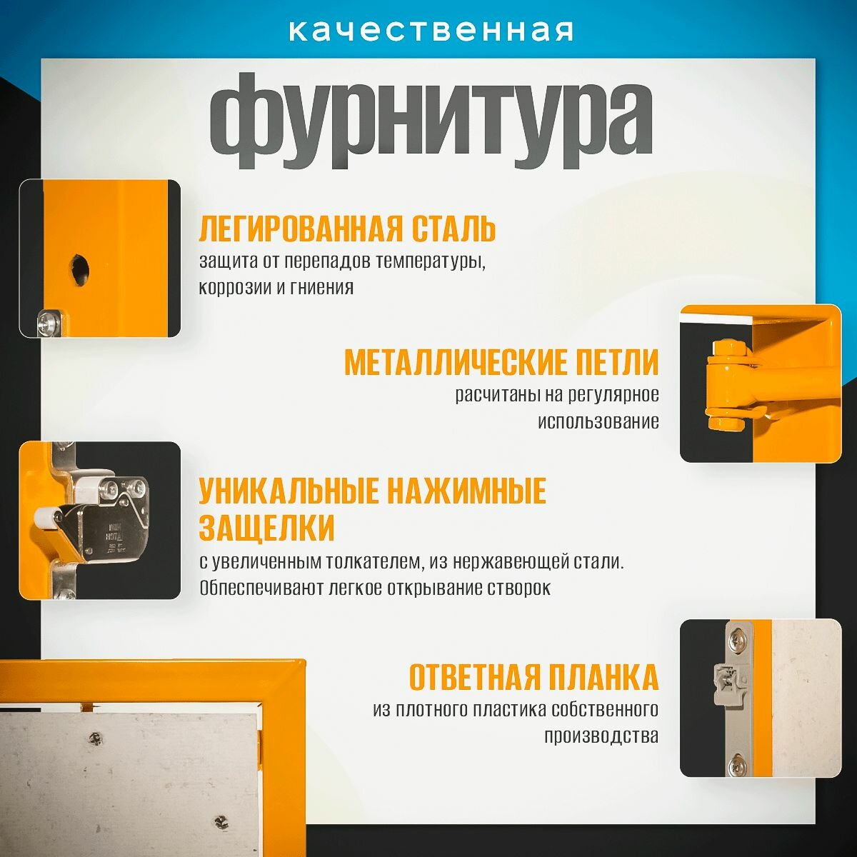 Нажимной ревизионный люк, под плитку, 50 см x 30 см, сталь, оранжевый