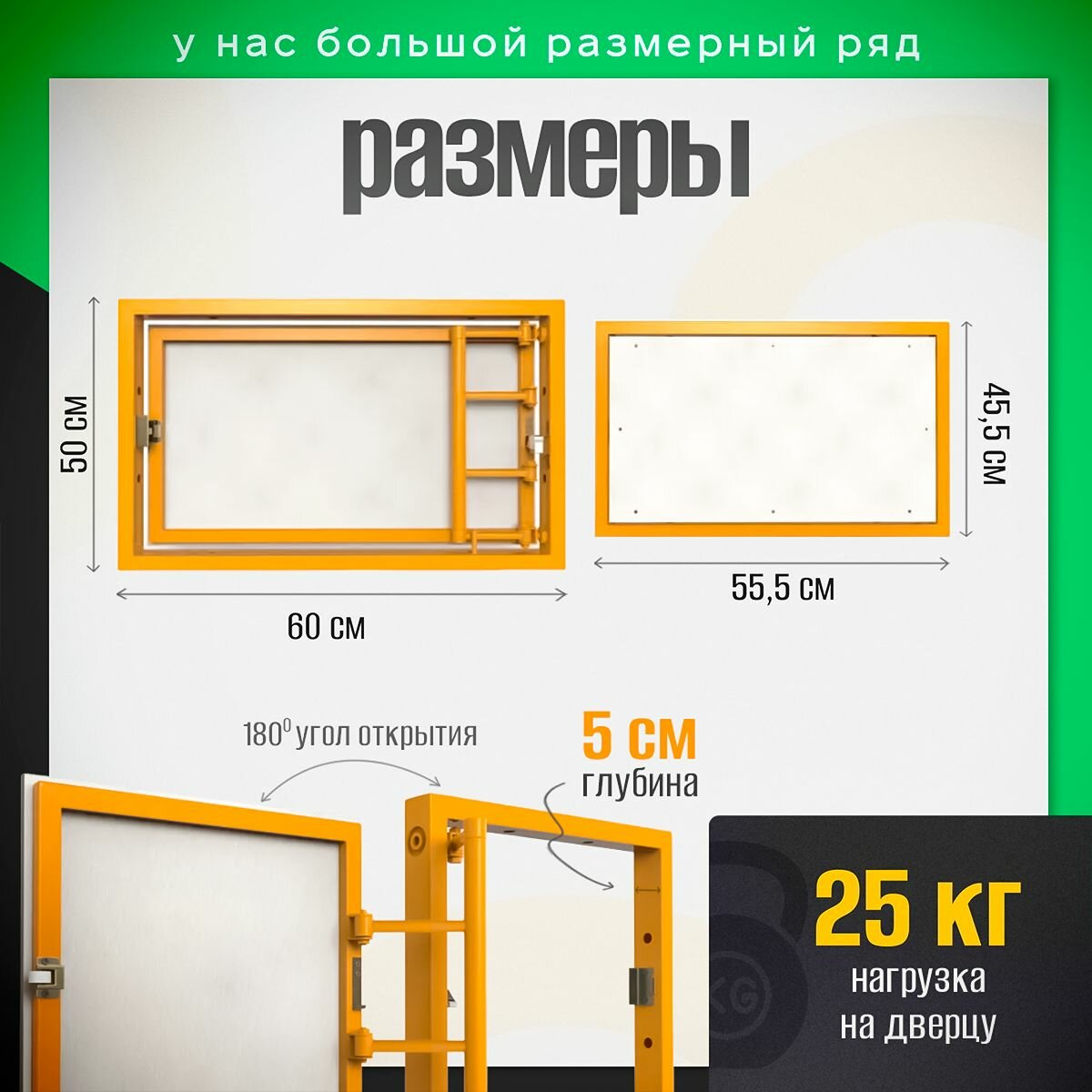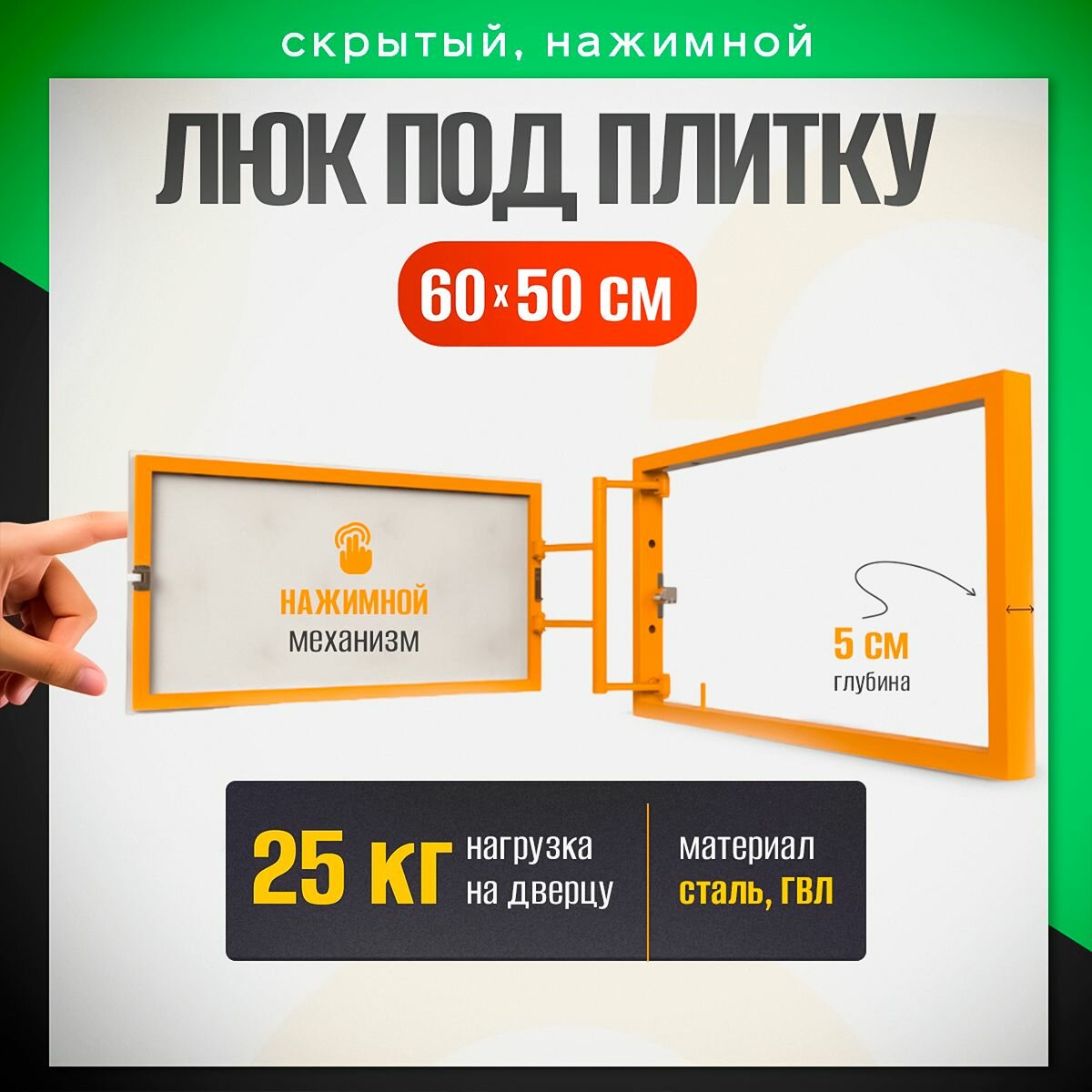 Нажимной ревизионный люк, под плитку, 50 см x 30 см, сталь, оранжевый