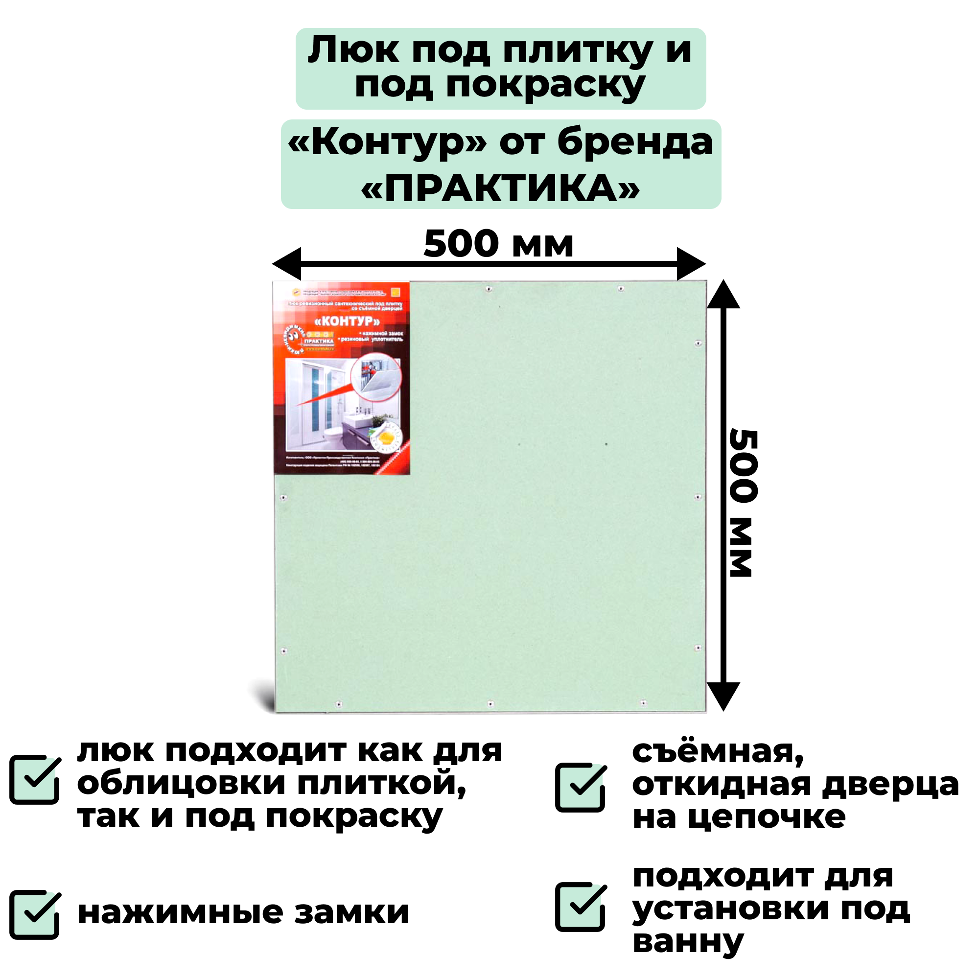 Люк «Контур» 50-50 (500х500 мм) под плитку и под покраску со дверцей на цепочке Практика интересное: