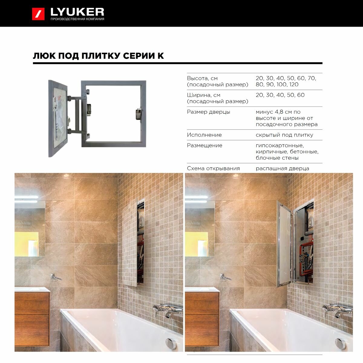 Купить Люк под плитку Люкер К 60/30 (в/ш) размер дверцы 55/25