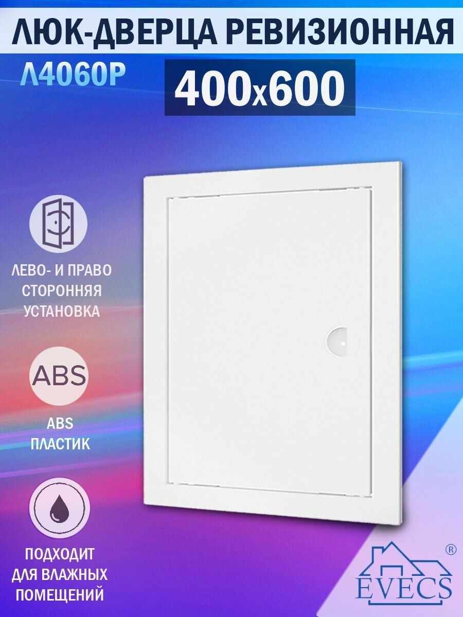 Купить Люк ревизионный для проема 400х600 мм (рамка 418x618 мм, фланец 396x596 мм) пластиковый, с ручкой, белый