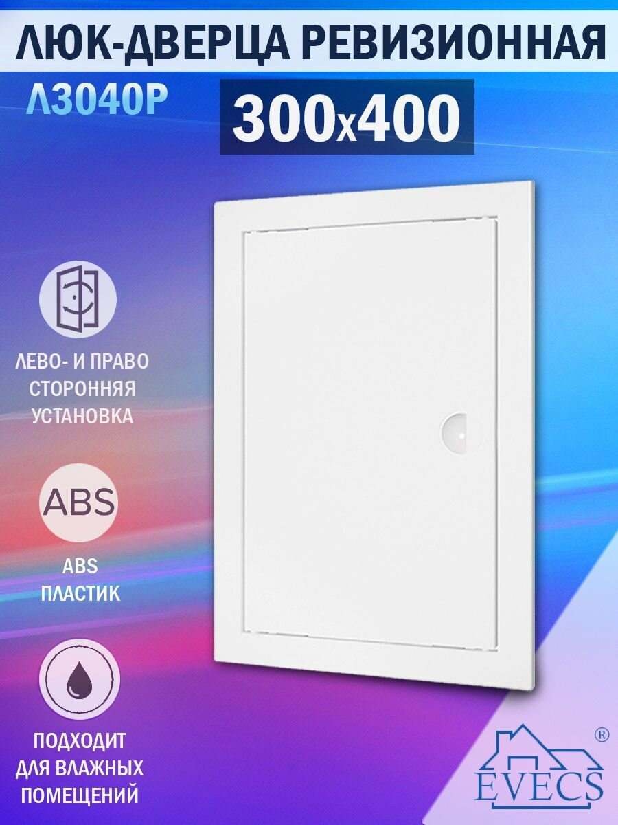 Купить Люк ревизионный для проема 300х400 мм (рамка 318х418 мм, фланец 296х396 мм) пластиковый, с ручкой, белый