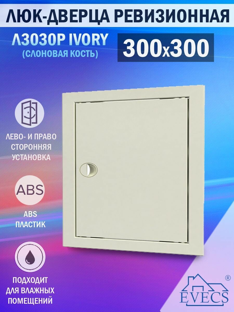 Купить Люк ревизионный для проема 300х300 мм (рамка 318х318 мм, фланец 296х296 мм) пластиковый, с ручкой, слоновая кость
