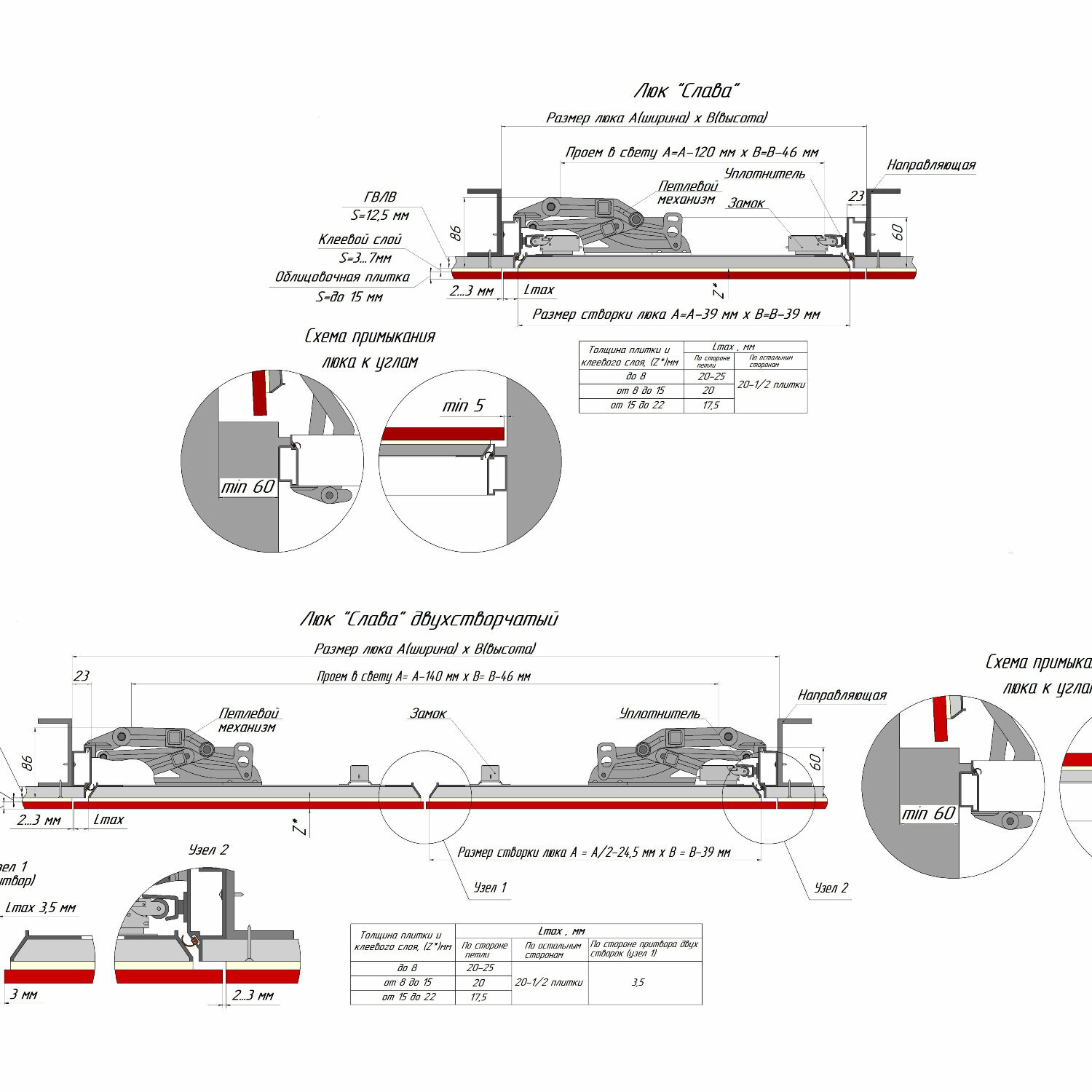 Люк под плитку Хаммер Слава 60/80 (ш/в)
