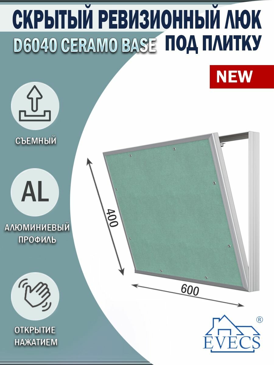 Купить Люк ревизионный под плитку 600х400 мм нажимной, съемная дверца, алюминиевый профиль, EVECS D6040 ceramo base
