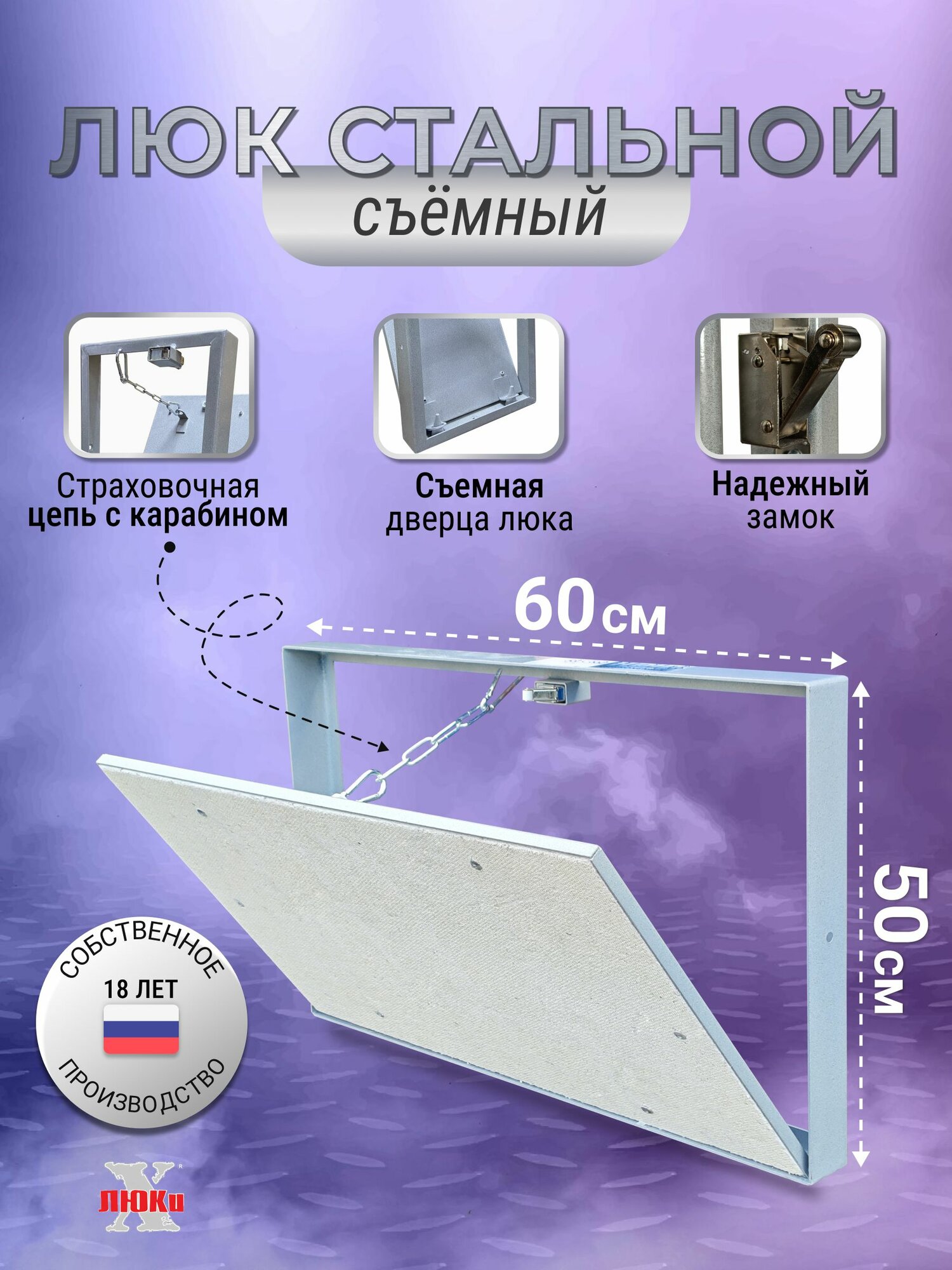 Люк ревизионный под плитку Модерн 50*60 см, сантехнический, стальной, съемный, настенный люк - невидимка скрытого монтажа, металлический