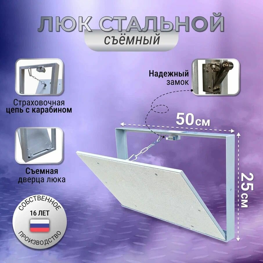Люк ревизионный под плитку Модерн 25*50 см сантехнический, стальной, съемный, настенный люк - невидимка скрытого монтажа, металлический