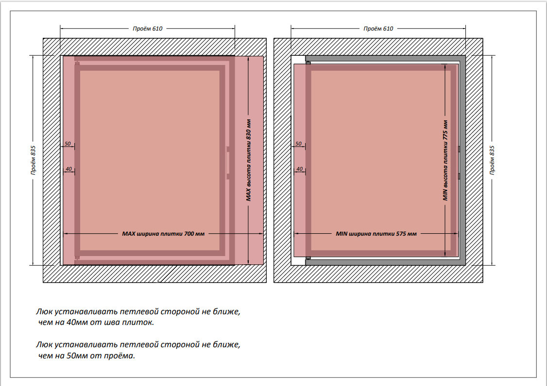 Ревизионный люк Формат КН 40–50 настенный под плитку ПРАКТИКА