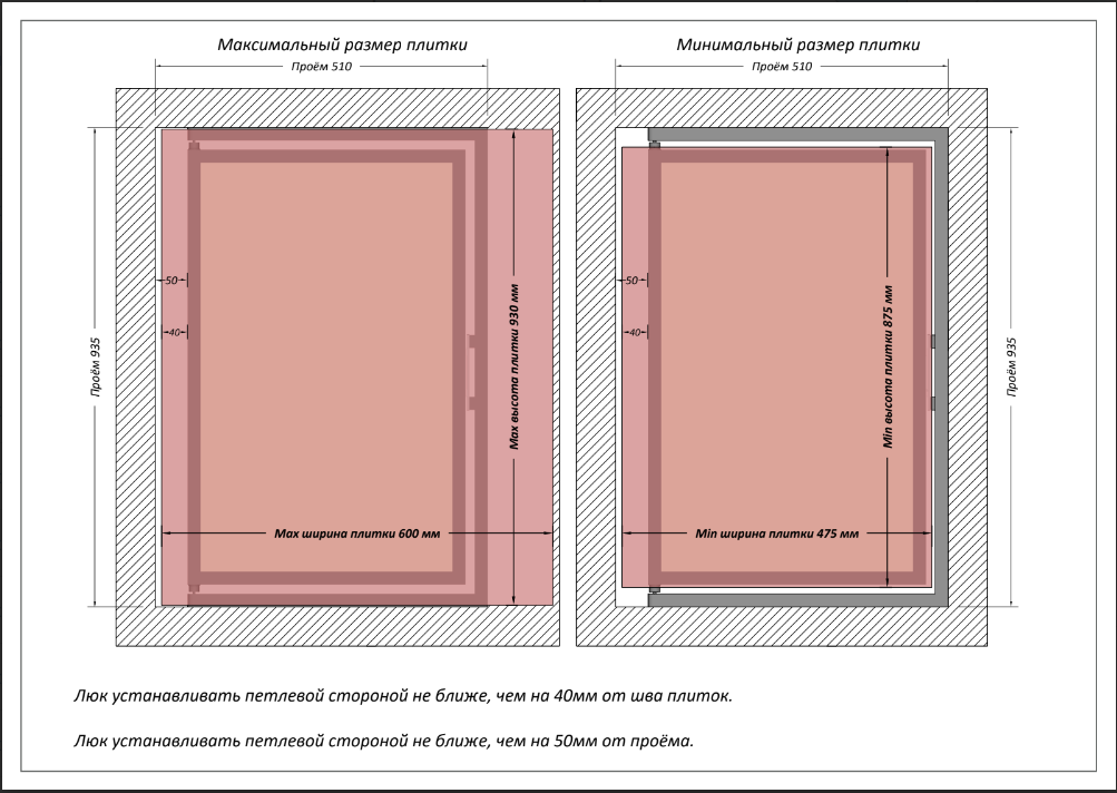 СохранитьЛюк ревизионный под плитку SHAGMA 500х900 мм фактический размер 460(ширина) х 933(высота) мм интересное: