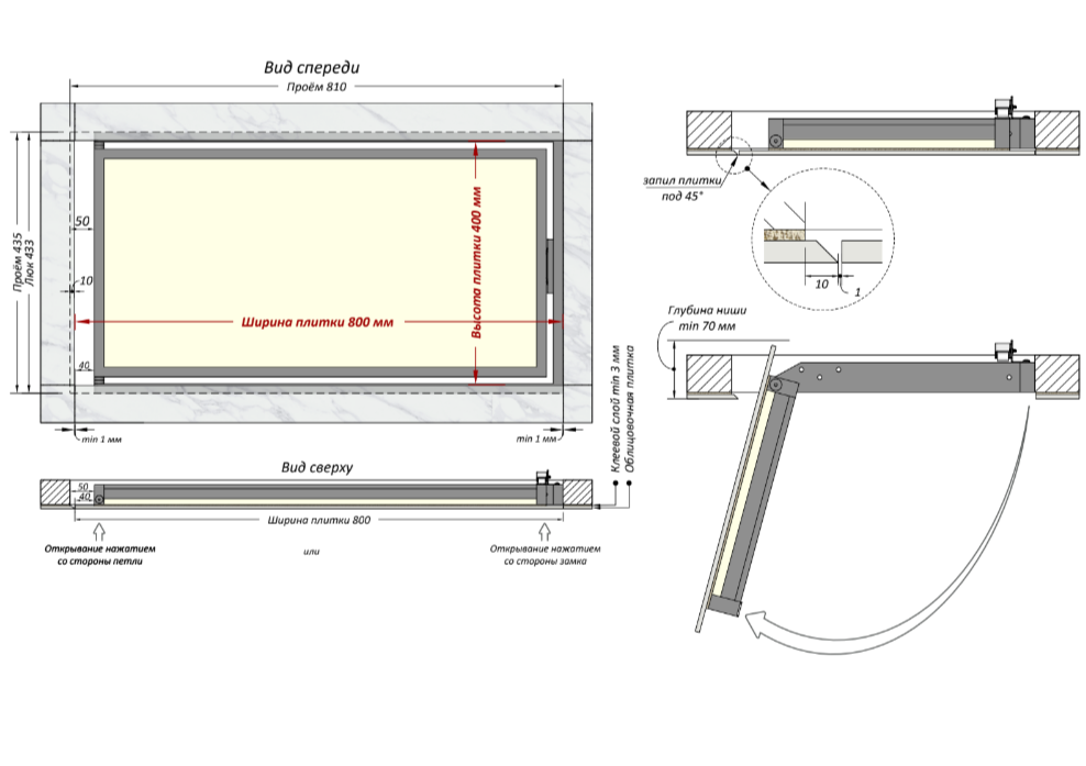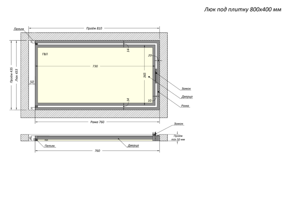 СохранитьЛюк ревизионный под плитку SHAGMA 800х400 мм настенный фактический размер 760(ширина) х 433(высота) мм интересное: