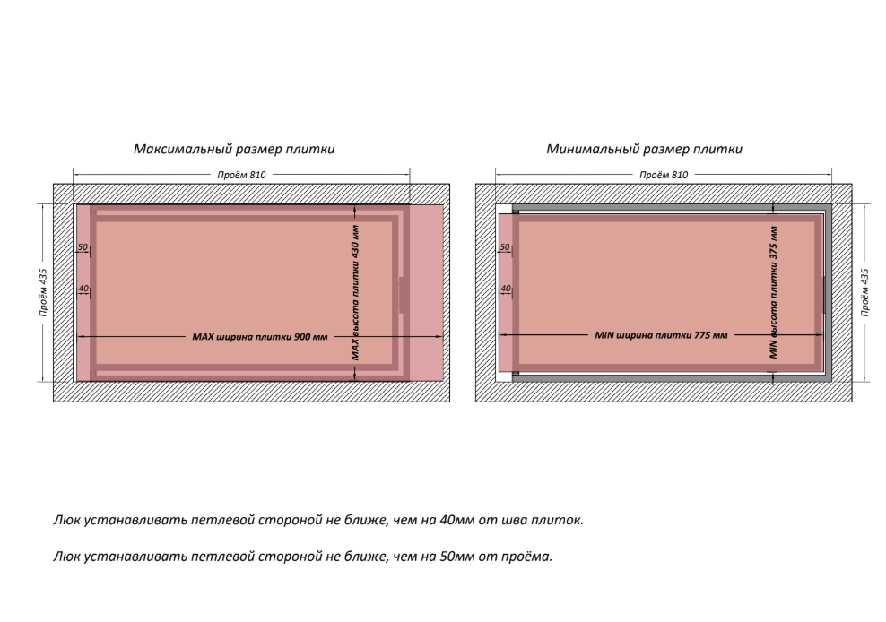 Ревизионный люк Формат КН 40–50 настенный под плитку ПРАКТИКА
