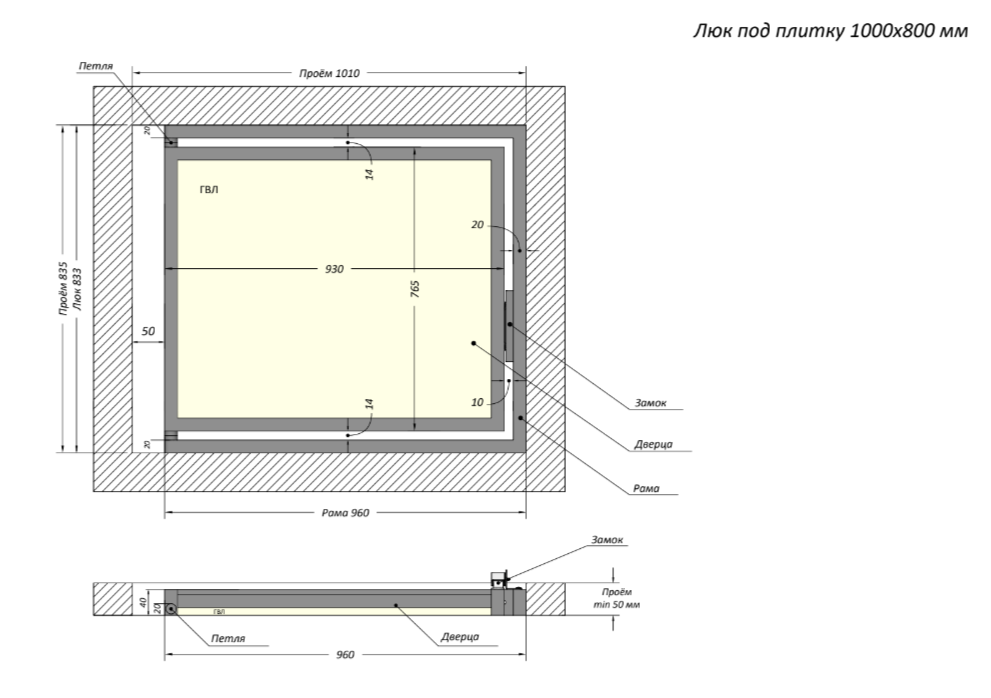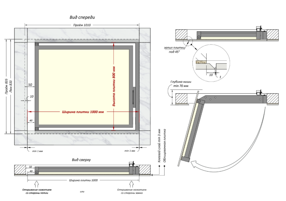 СохранитьЛюк ревизионный под плитку SHAGMA 1000х800 мм настенный фактический размер 960(ширина) х 833(высота) мм интересное:
