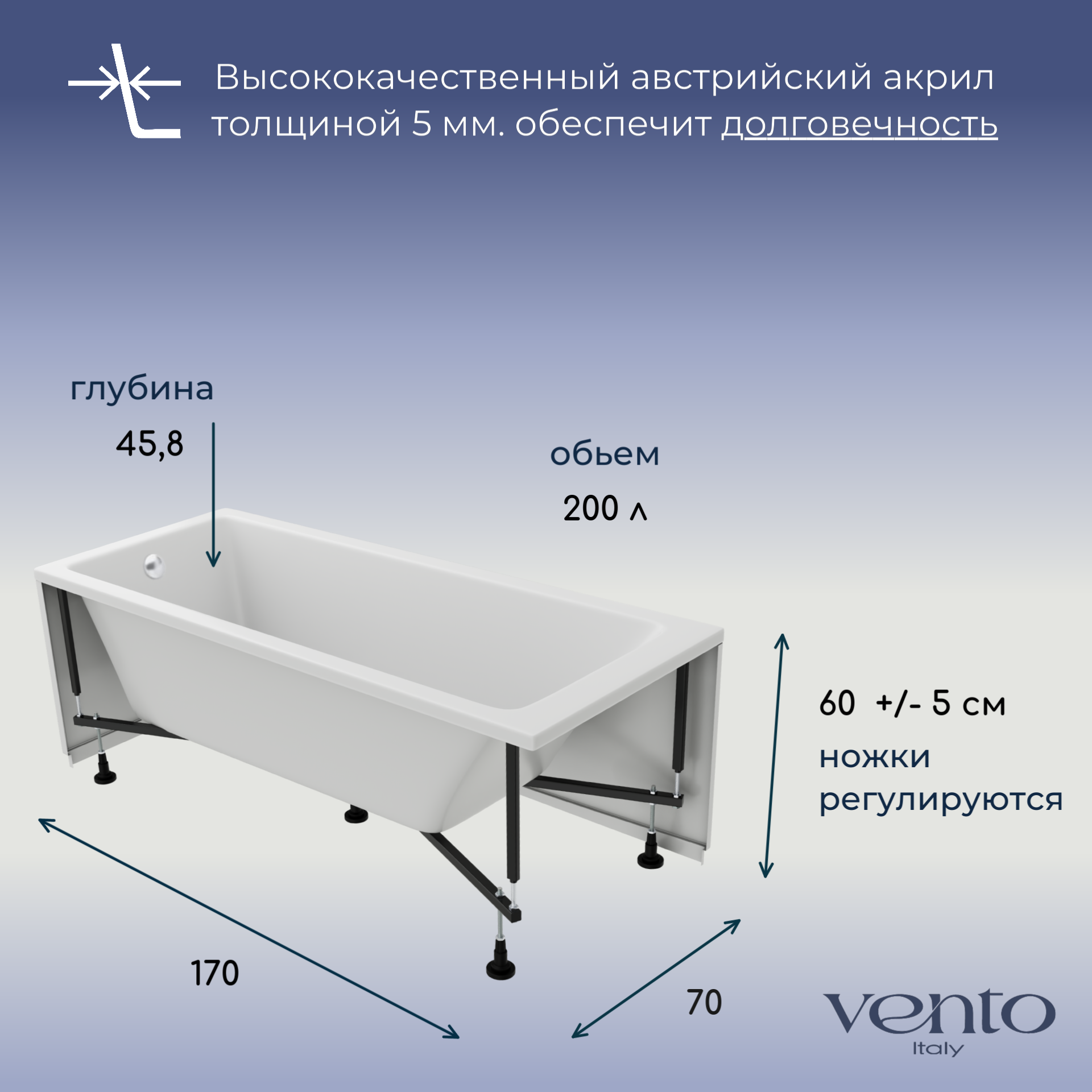 Акриловая ванна 170х70 NOVARO от бренда Vento Italy, белая, п интересное: