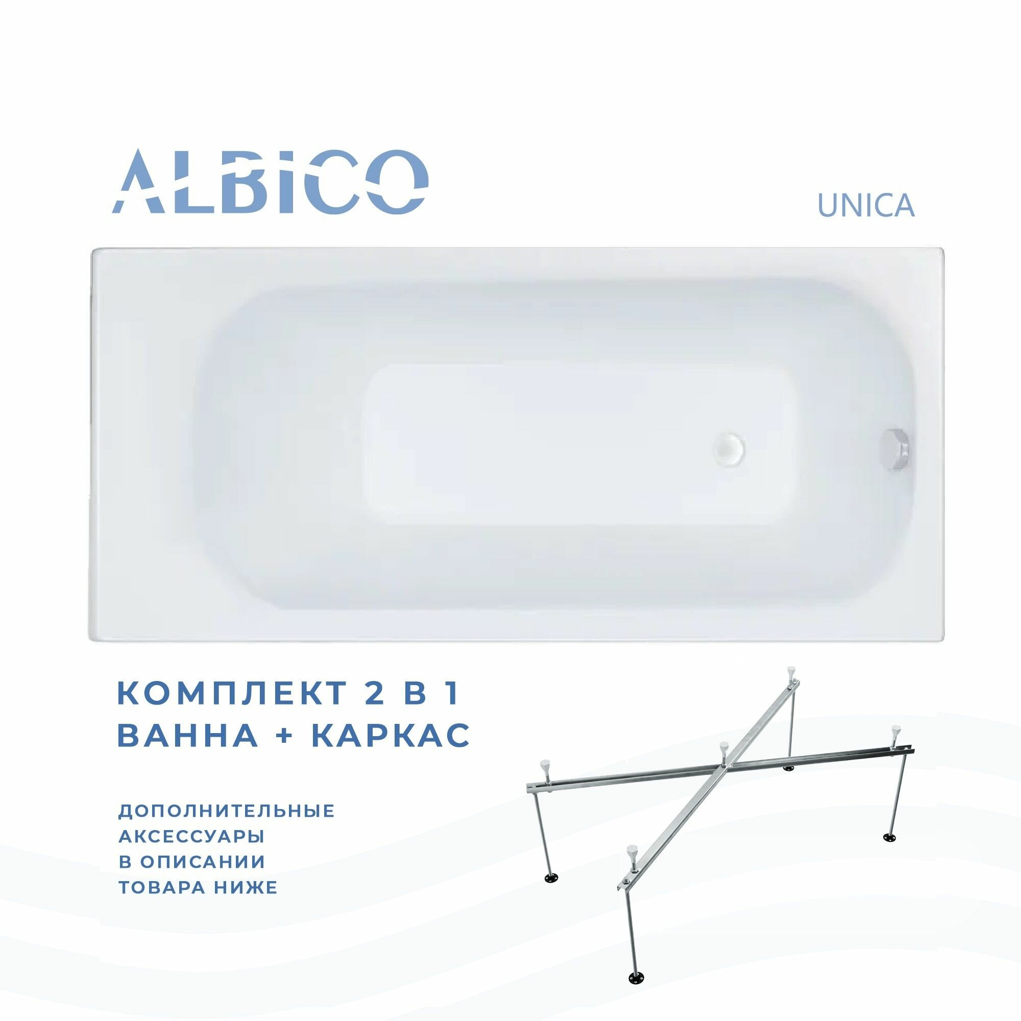 Ванна акриловая Albico Unica 160х70 в комплекте с каркасом