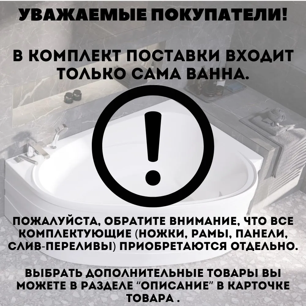 Ванна акриловая 170х75 см 1MARKA PICCOLO в наборе 4 в 1: Ванна, каркас, фронтальная панель, слив-перелив 01пк1775пкп