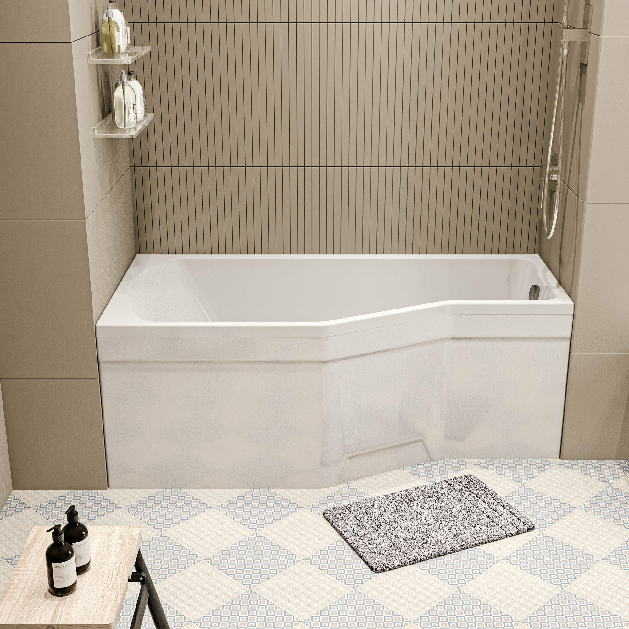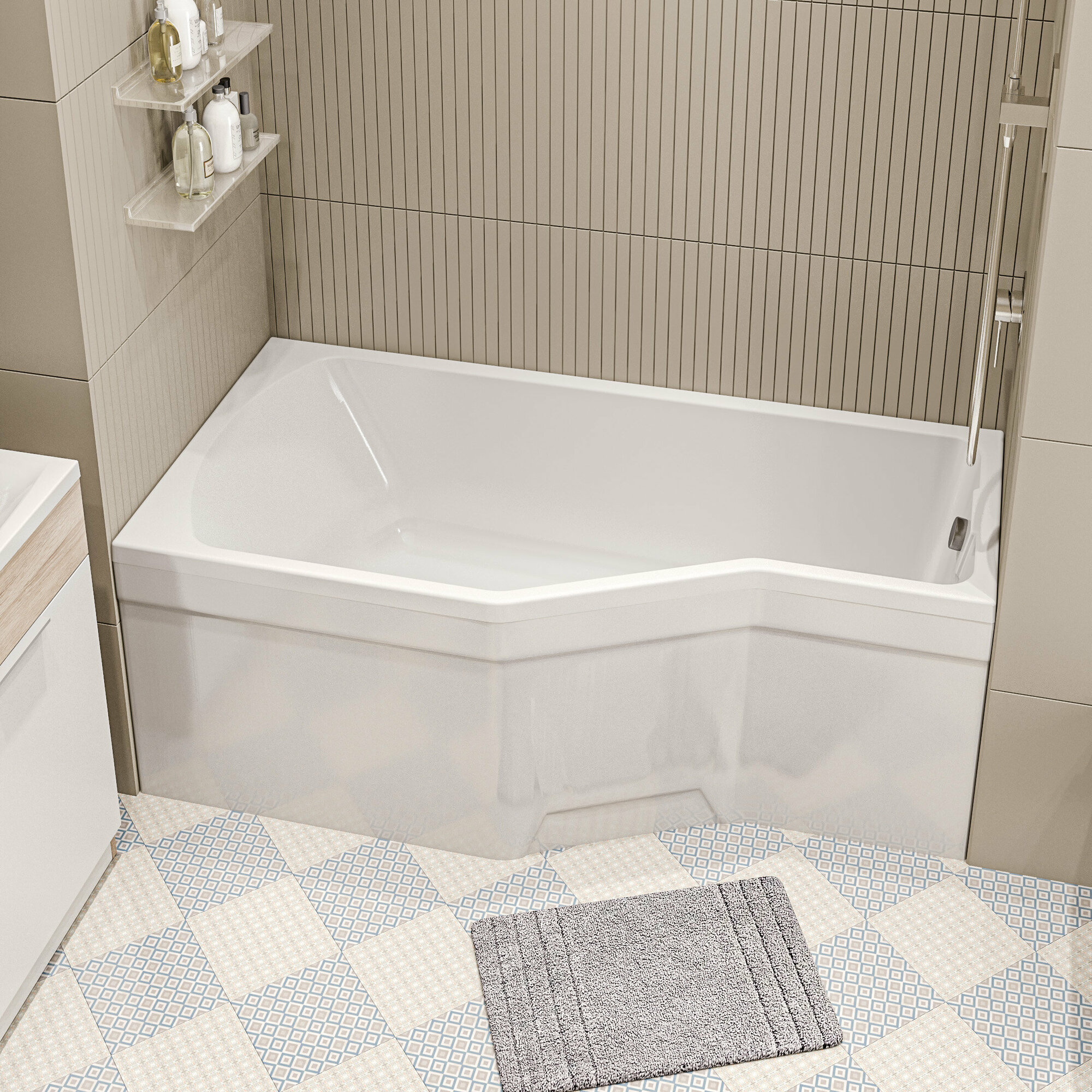 Ванна акриловая 170х75 см 1MARKA Convey в наборе 3 в 1: Асимметричная ванна левый угол, металлические ножки, слив-перелив хром 01кон1775лкс2+