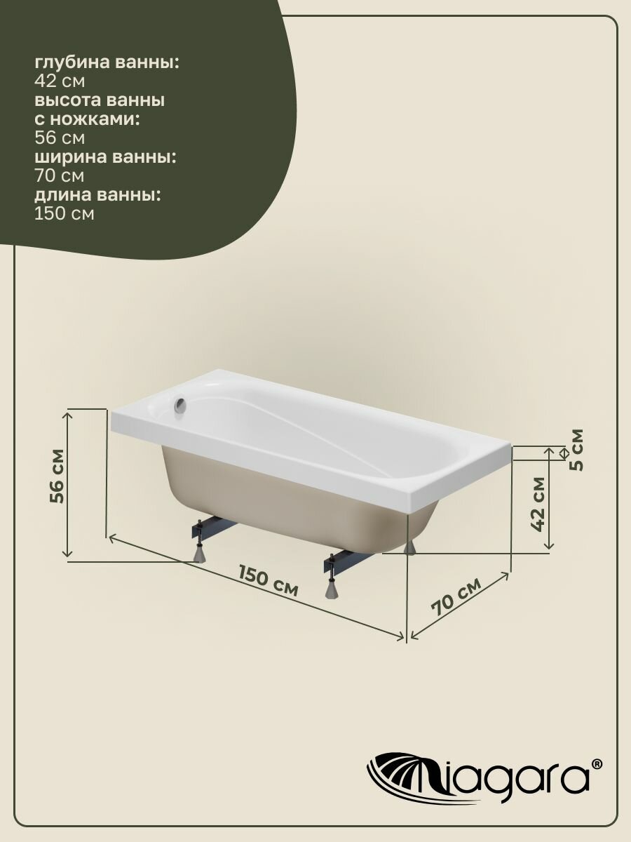 Ванна акриловая Niagara Atrio NG-A15070 (150х70х42) с каркасом
