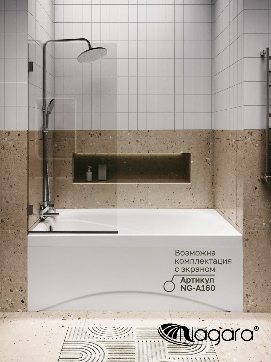 Ванна акриловая Niagara Atrio NG-A16070 (160х70х56) с усиленным каркасом, экраном и сифоном