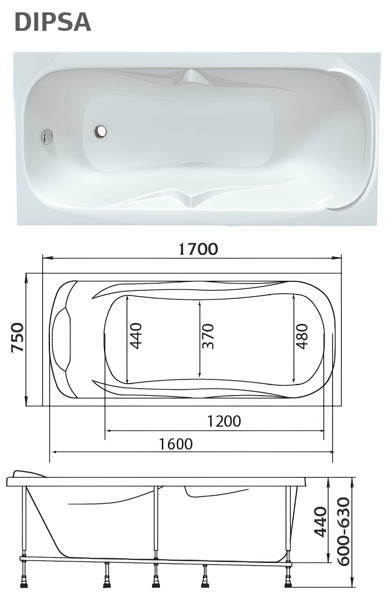 Купить Ванна акриловая 170х75 см DIPSA комплект 4в1: Акриловая ванна, фронтальная панель, рама, слив-перелив 12017894кп