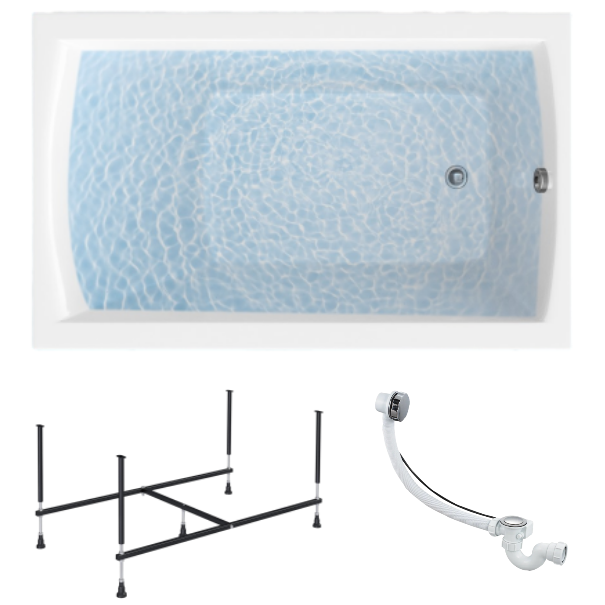 Ванна акриловая 160х70 см ELEGANCE комплект 3в1: Акриловая ванна, металлическая рама, слив-перелив 01эл1670кс2+
