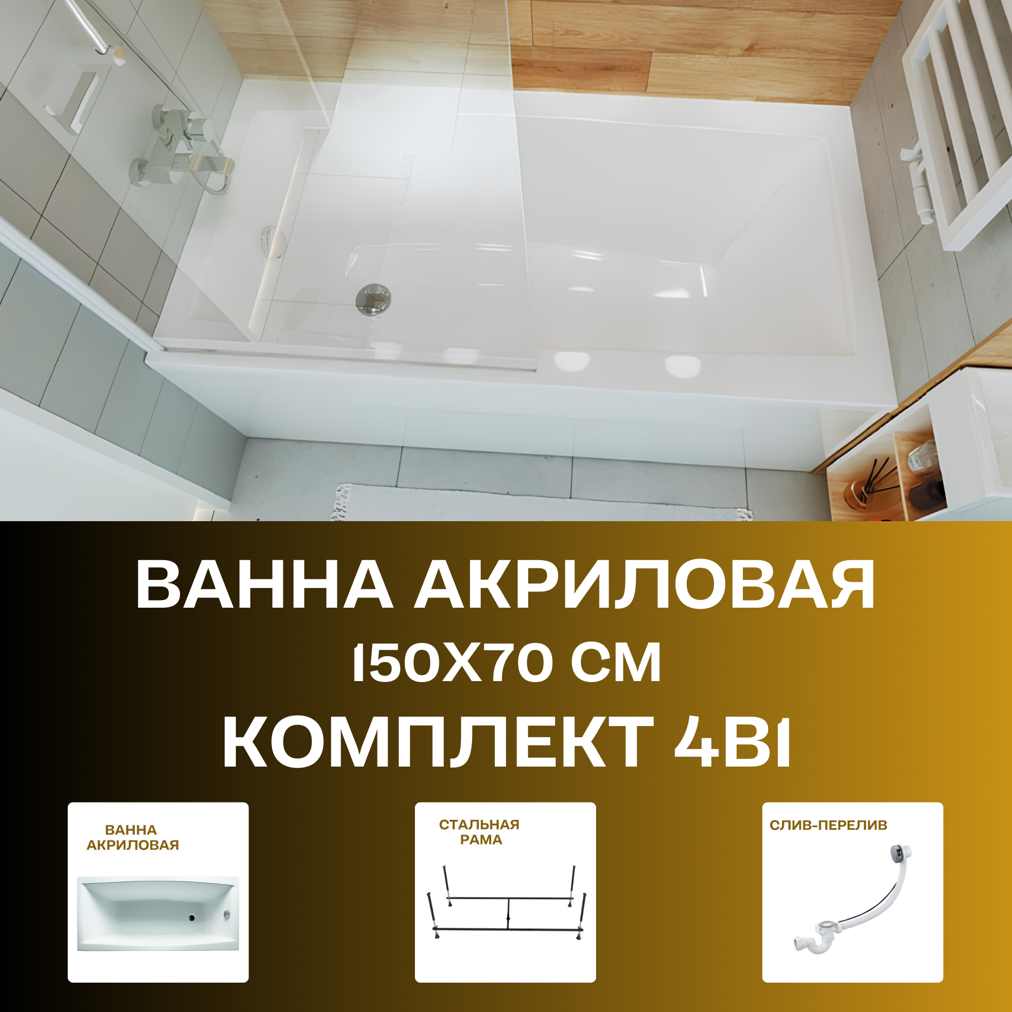 Ванна акриловая 150х70 см VIOLA комплект 3в1: Акриловая ванна, металлическая рама, слив-перелив 01ви1570кс2+ интересное: