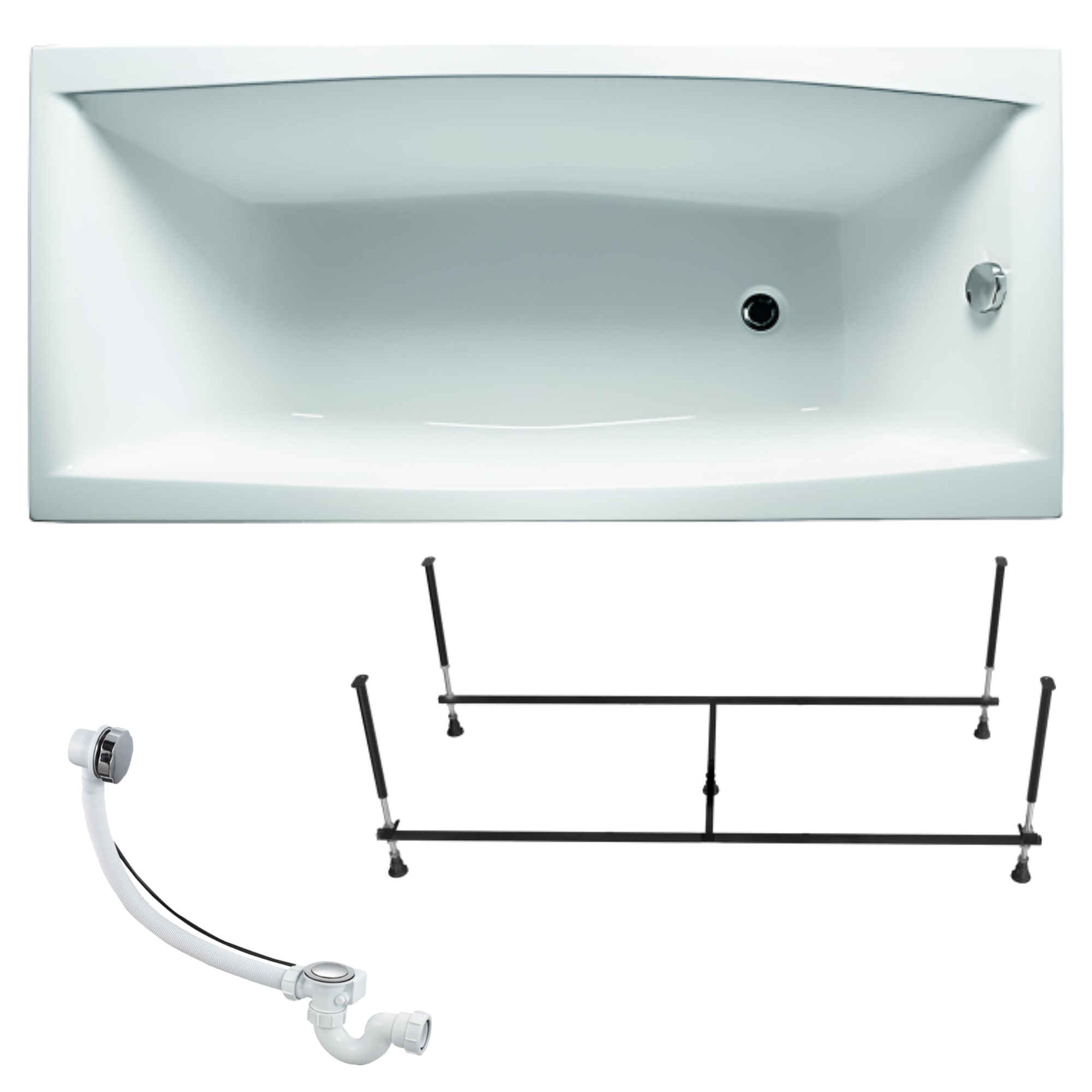 Ванна акриловая 120х70 см VIOLA комплект 3в1: Акриловая ванна, металлическая рама, слив-перелив 01ви1270кс2+