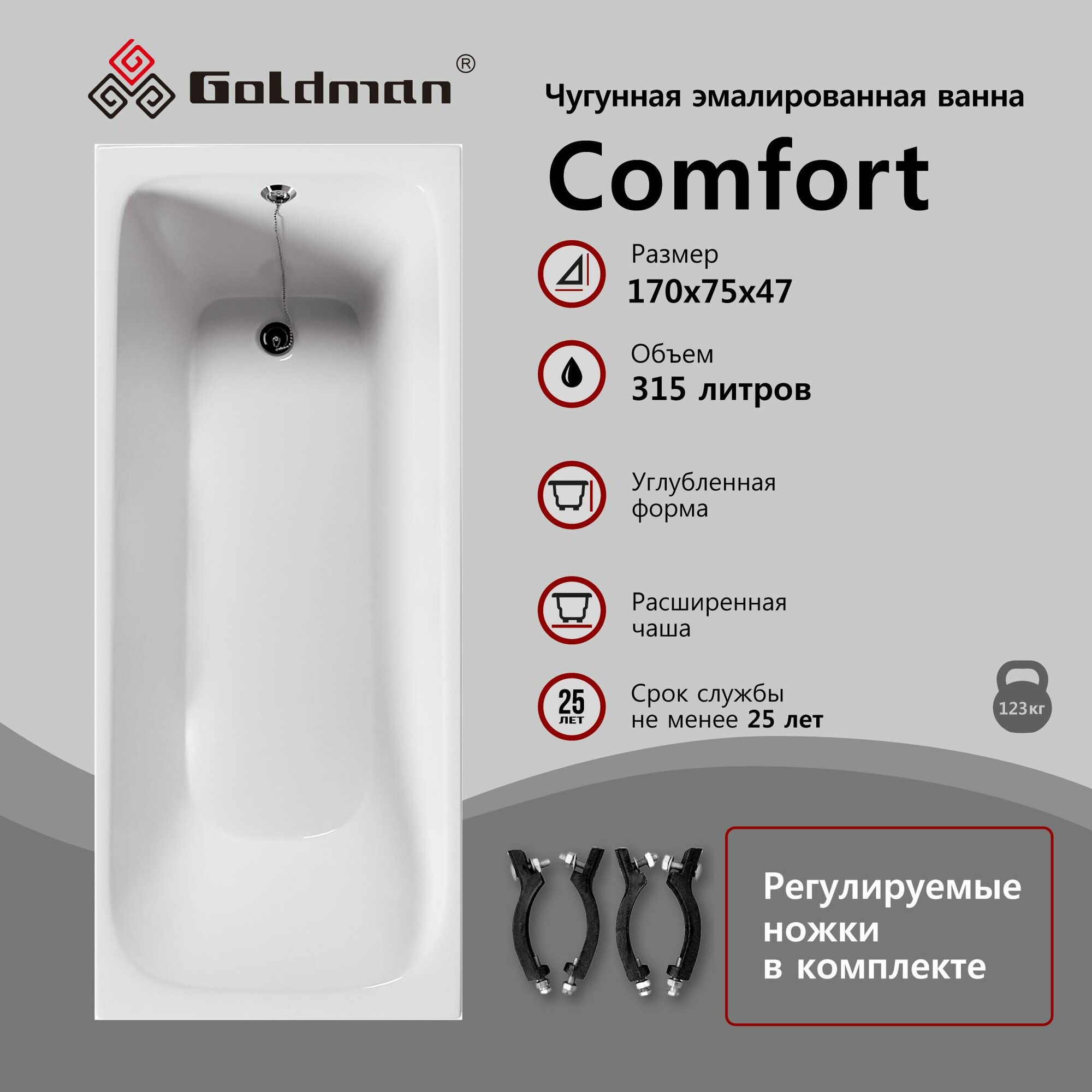 Чугунная ванна Goldman Comfort 170x75x47 интересное:
