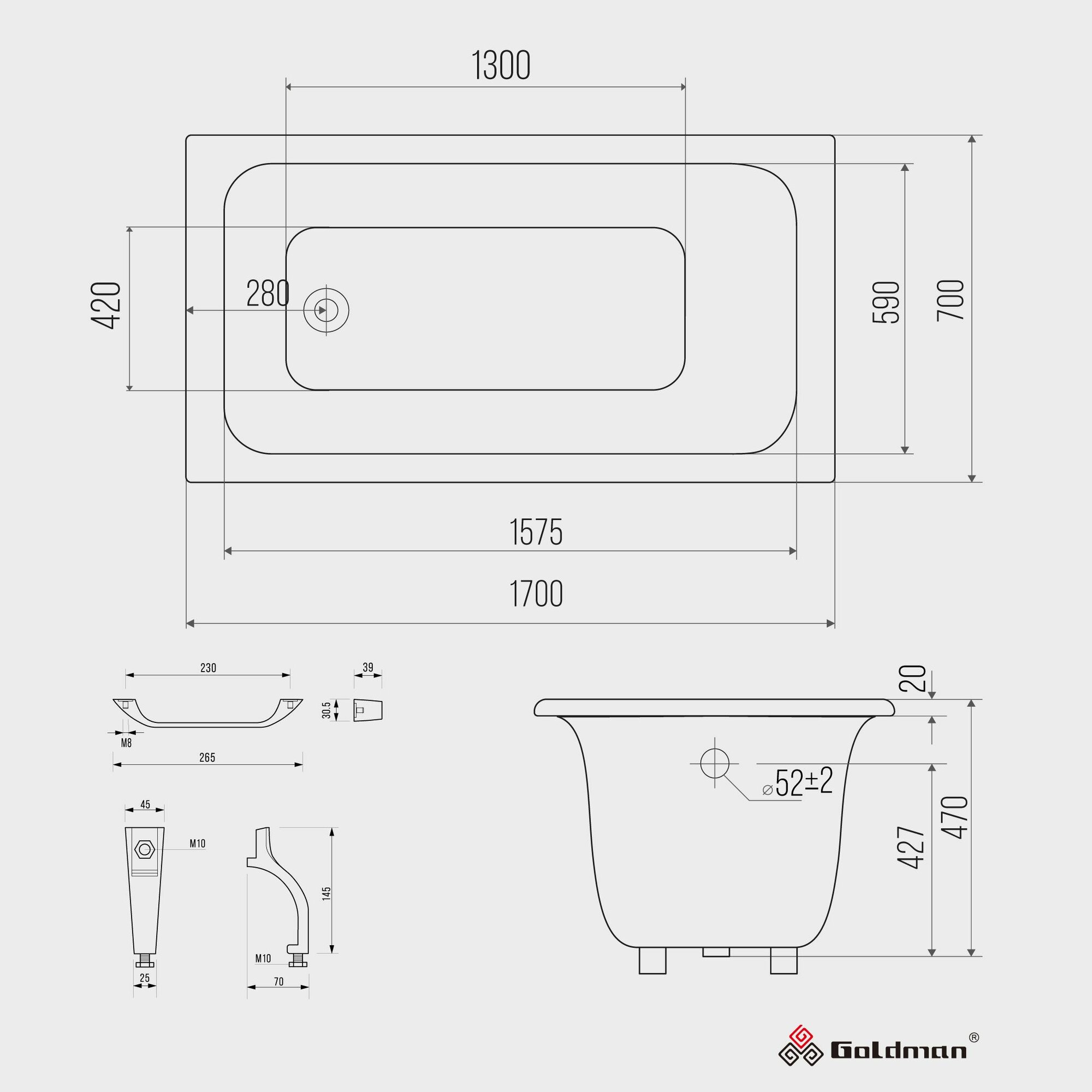 Чугунная ванна Goldman Comfort 170x70x47 интересное: