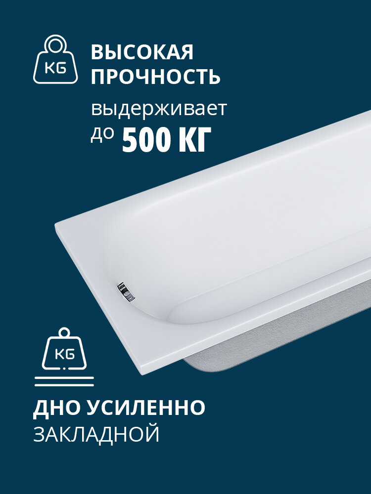 Акриловая ванна Benneri Milano 160x70 прямоугольная, без ножек и экрана