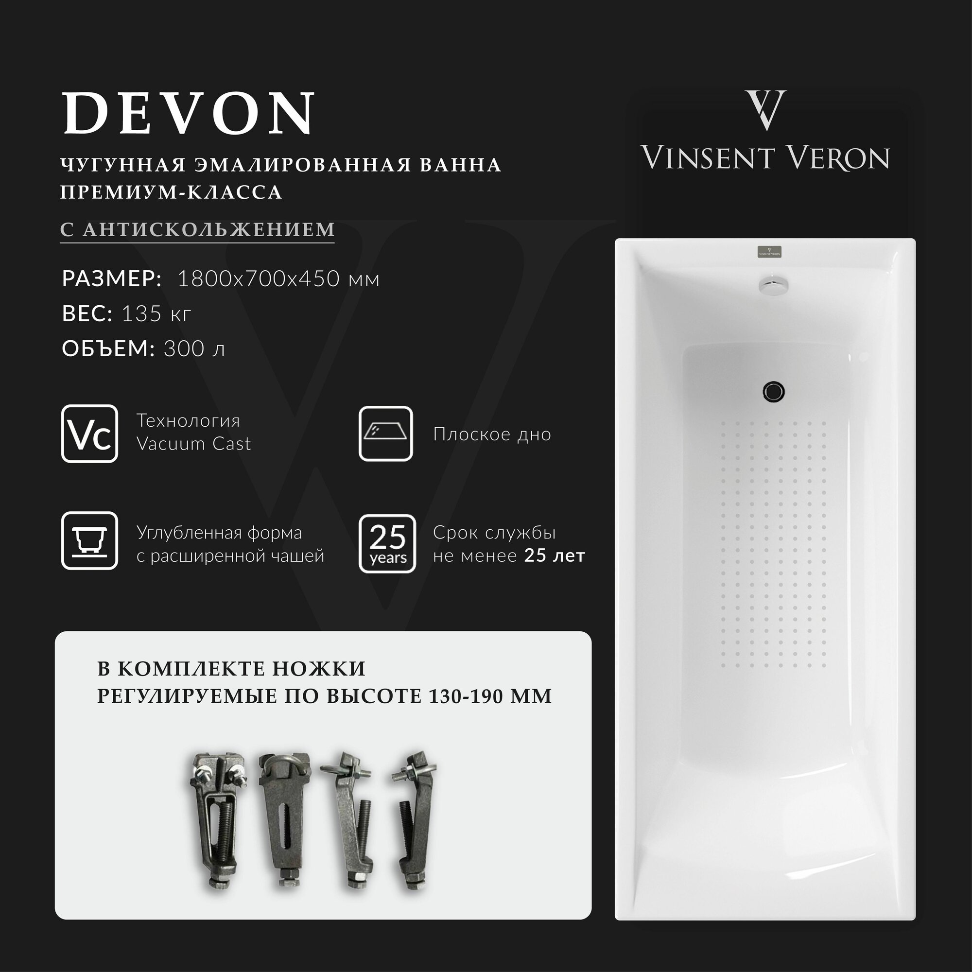 Чугунная ванна Vinsent Veron Devon 180x70x45