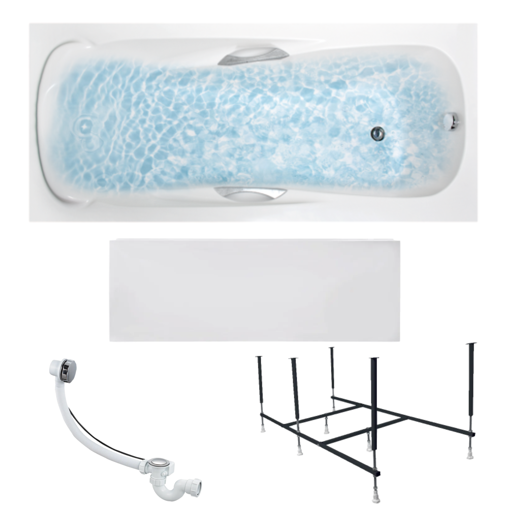 Купить Ванна акриловая 170х75 см CALYPSO комплект 4в1: Акриловая ванна, фронтальная панель, рама, слив-перелив 01каи1775кп
