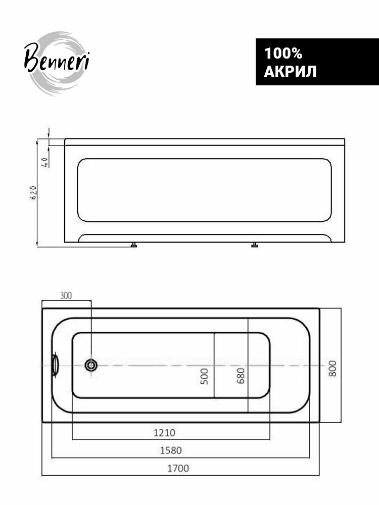 СохранитьПрямоугольная ванна акриловая Benneri Modena 170x80, в комплекте с ножками и фронтальной панелью интересное: