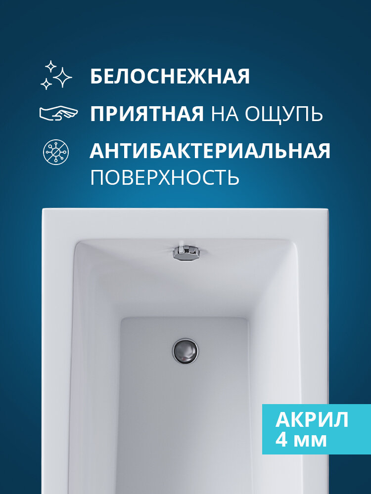 Ванна акриловая прямоугольная Benneri Modena 175x70, без ножек, без экрана