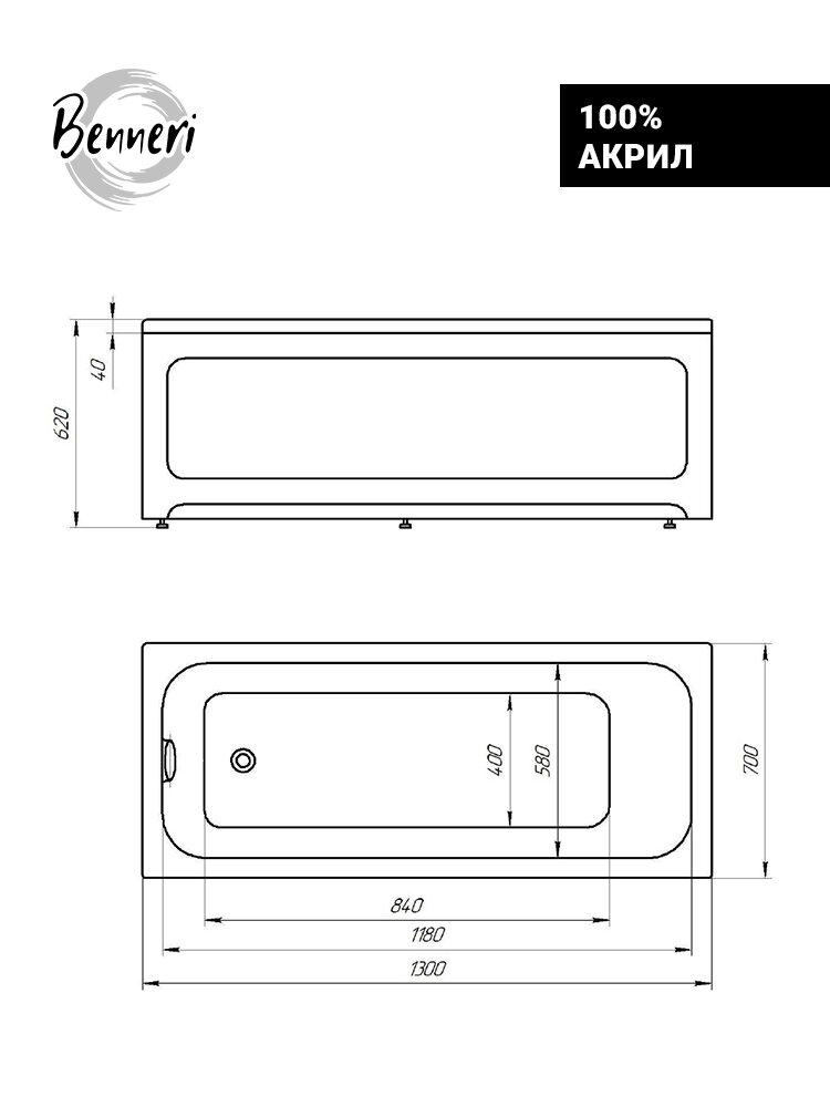 СохранитьПрямоугольная акриловая ванна Benneri Modena 130x70, в комплекте с ножками и фронтальной панелью интересное: