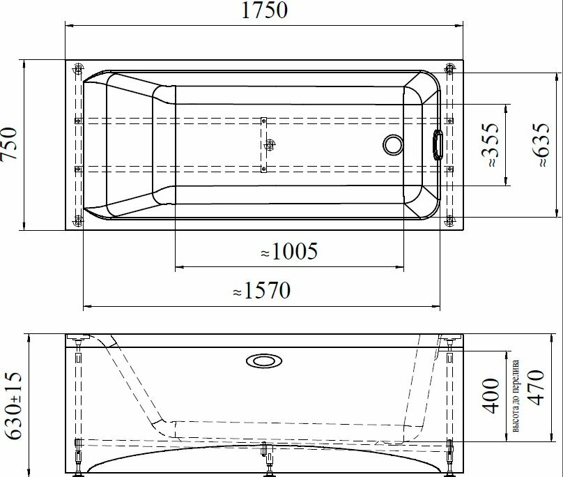 Купить Акриловая ванна "Радомир", "Агата" 175х75х63 см (чаша ванны+каркас+фронтальная панель+слив -перелив)