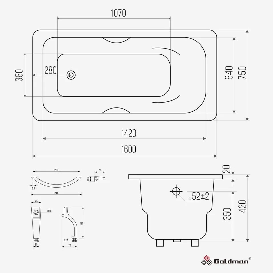 СохранитьЧугунная ванна Goldman Donni 160x75x42 с дугообразными хромированными ручками интересное: