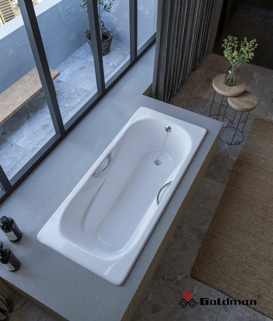 Чугунная ванна Goldman Donni 170x75x42 с дугообразными хромированными ручками