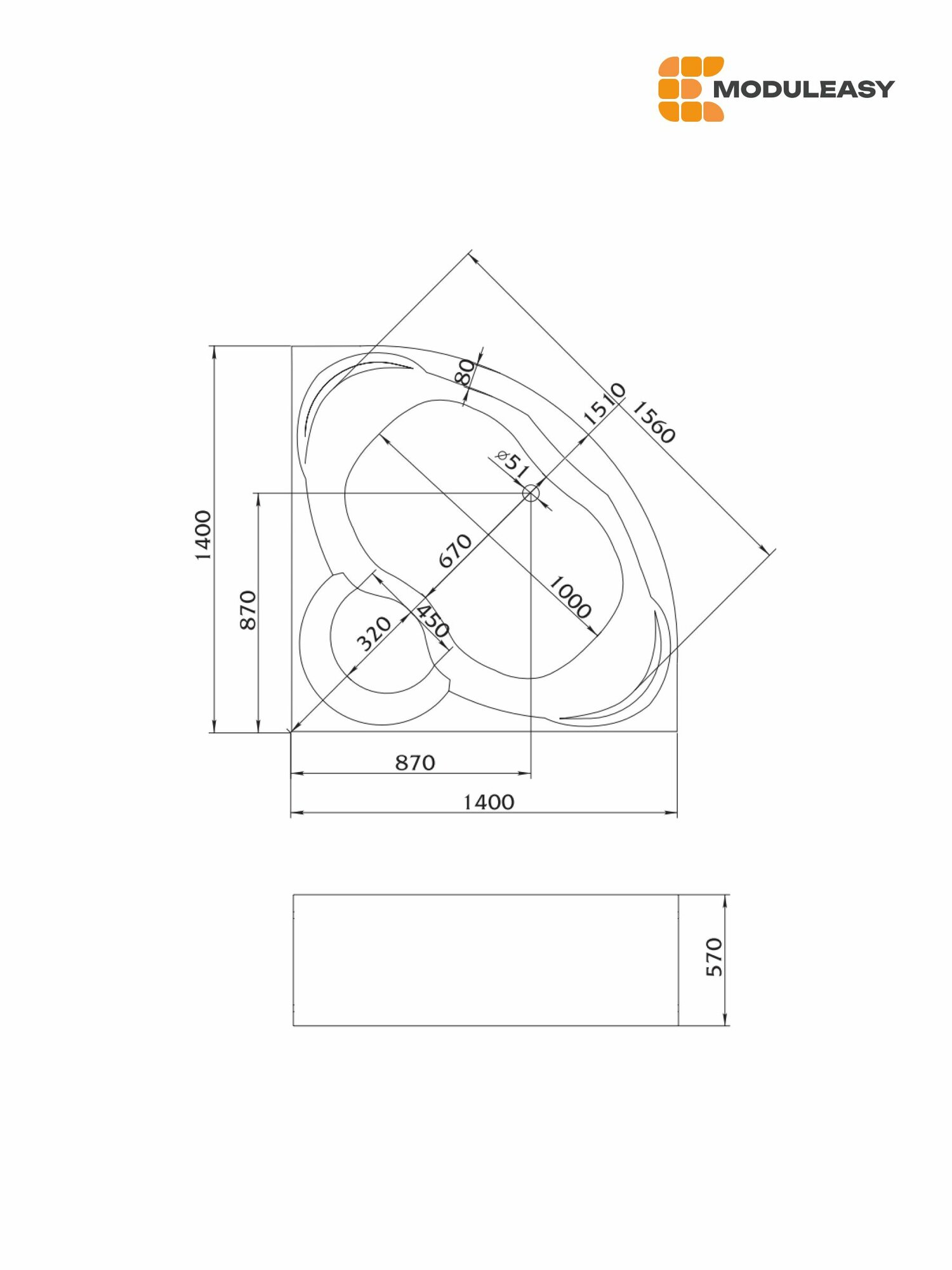 Купить Ванна акриловая 140х140 см EDWIN Угловая белая, 100% сантехнический акрил, MODULEASY 01эдв1414