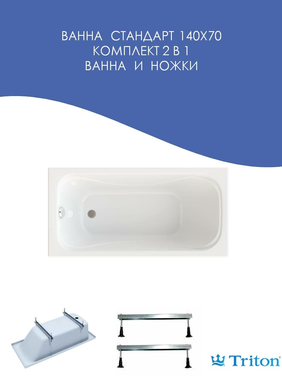 Купить Ванна акриловая Triton Стандарт 140х70 в комплекте с ножками, прямоугольная, белая