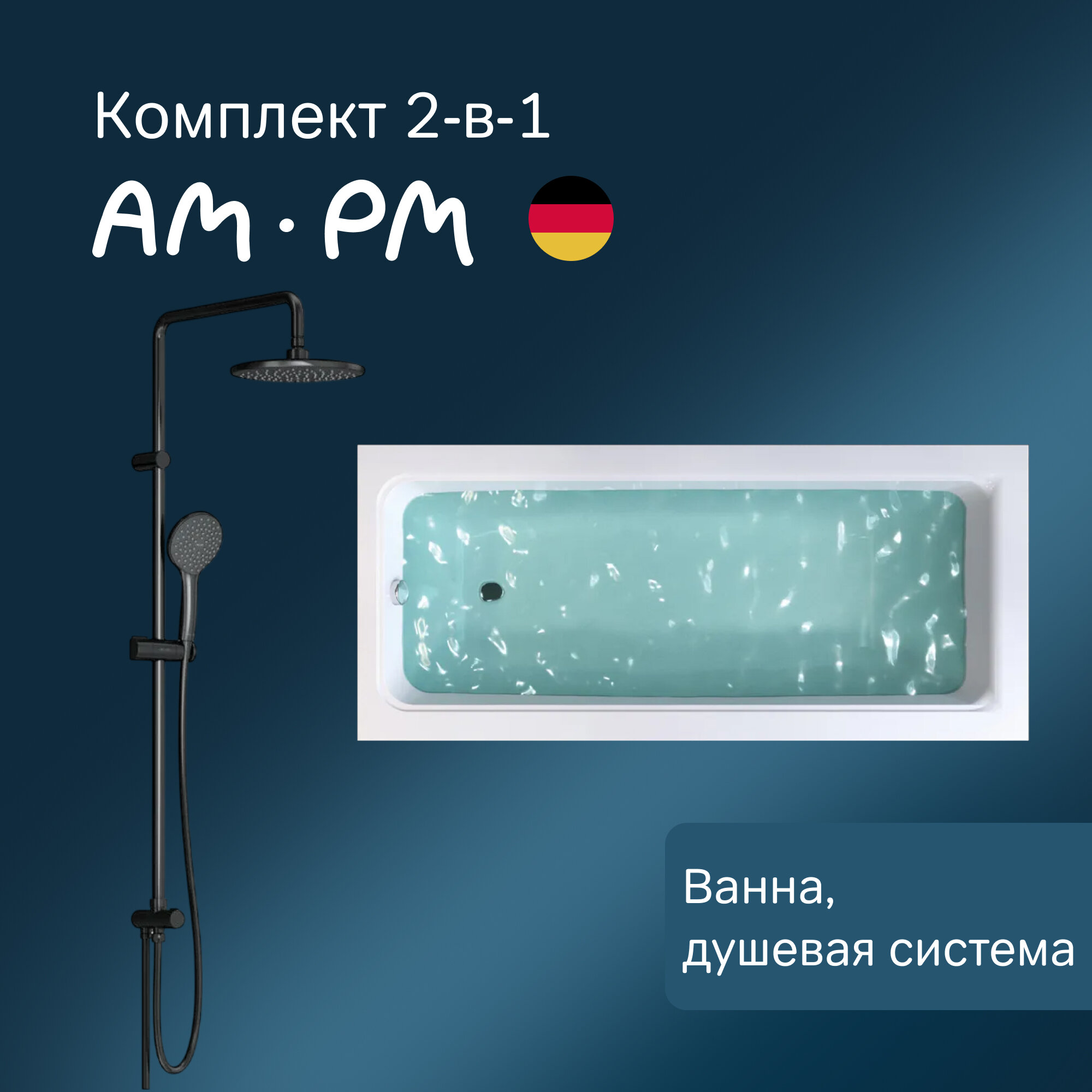 Ванна акриловая AM.PM Gem 170x70 с душевой системой Gem черный, литьевой акрил, вакуумная формовка интересное: