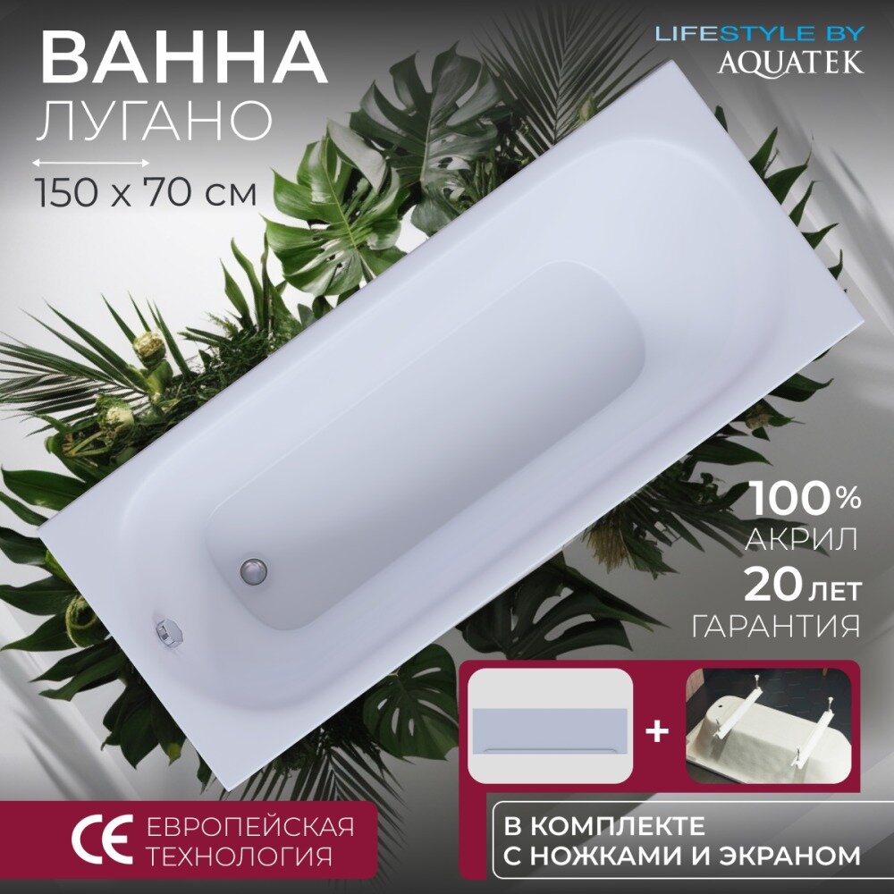 Купить Акриловая ванна Aquatek Лугано 150x70 LUG150. KAR47. EKR88 с ножками и экраном в комплекте