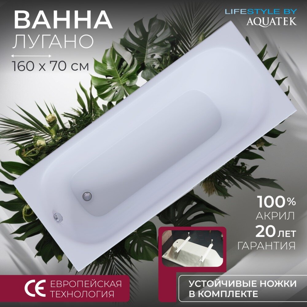 Купить Акриловая ванна Aquatek Лугано 160x70 LUG160. KAR47 с ножками в комплекте