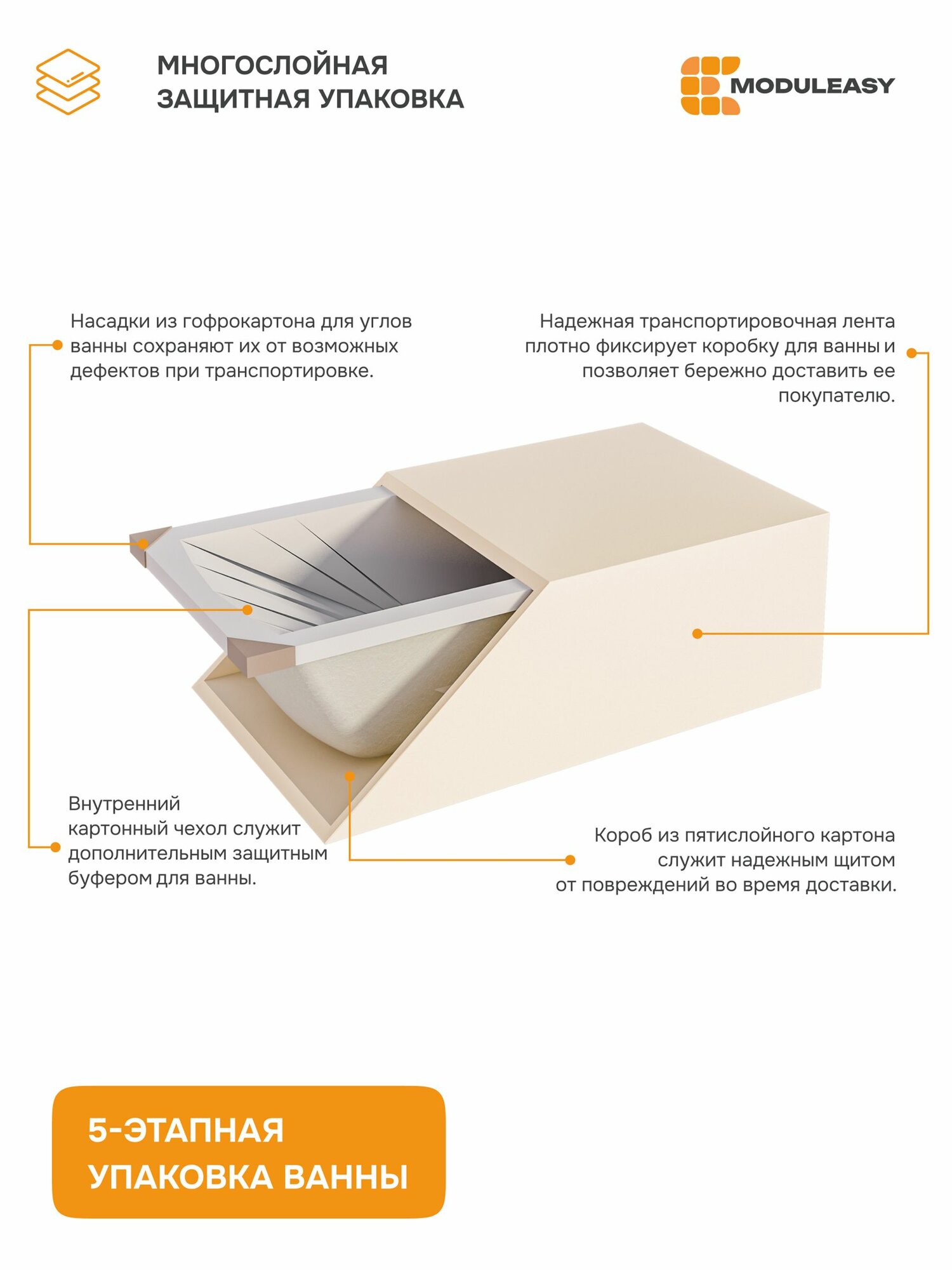 Ванна акриловая 155х70 см KANE MODULEASY в комплекте 4в1: Прямоугольная ванна, фронтальная панель, стальная рама, слив-перелив 01кейн15570кп